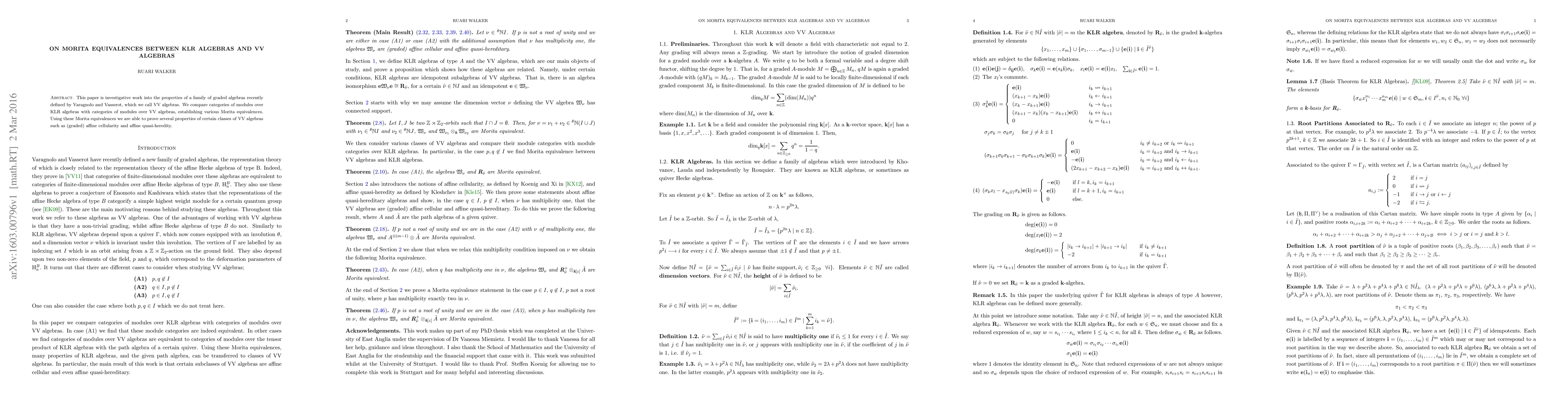 This paper is investigative work into the properties of a family of graded algebras recently defined by Varagnolo and Vasserot, which we call VV algebras. We compare categories of modules over KLR algebras with categories of modules over VV algebras, establishing various Morita equivalences. Using these Morita equivalences we are able to prove several properties of certain classes of VV algebras such as (graded) affine cellularity and affine quasi-heredity.