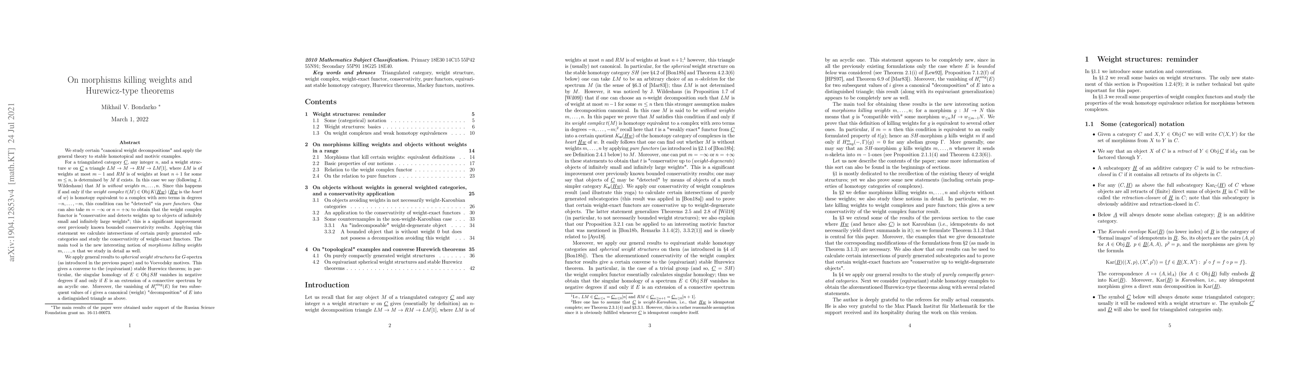 The paper introduces the concept of morphisms killing weights and provides a detailed study of their properties, leading to improved understanding of weight complexes and their conservativity.