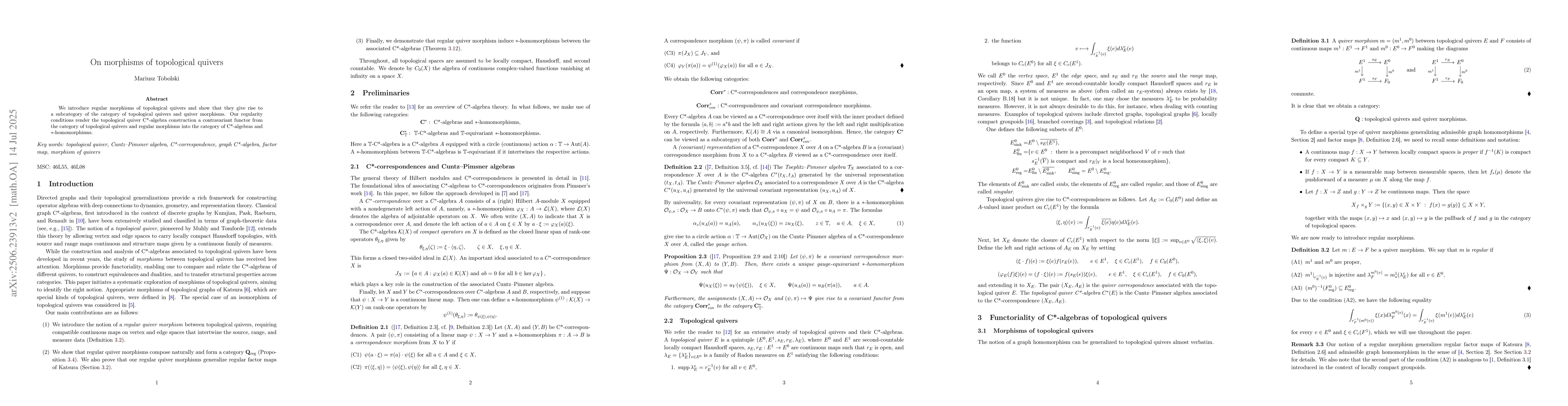 This work presents a novel approach to the study of morphisms between topological quivers, using a combination of graph theory, C*-algebras, and topological spaces.