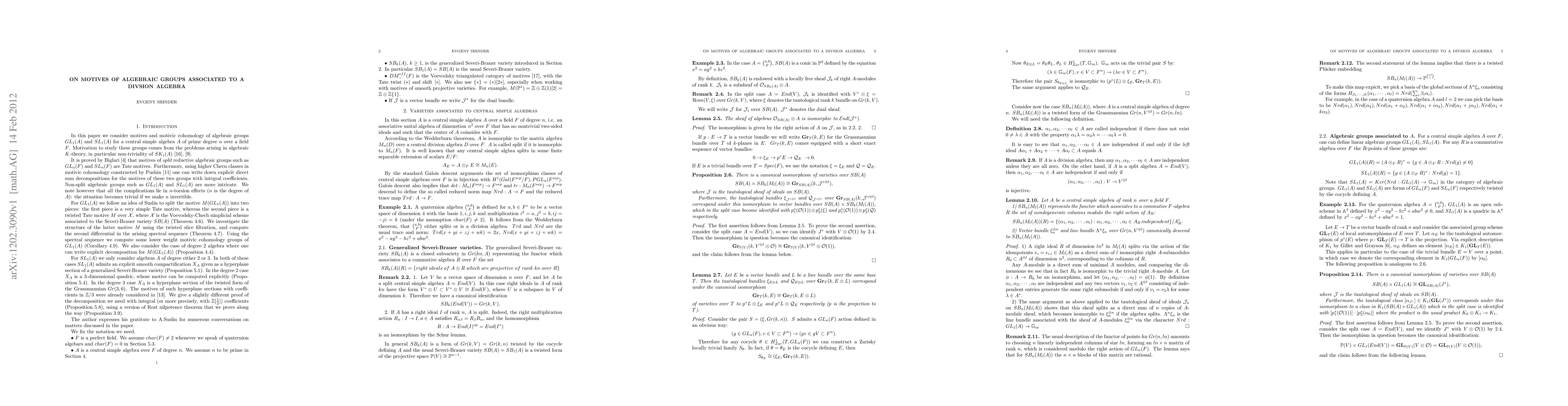 This research paper explores the connection between algebraic groups and their associated motives in the category of motivic complexes. It relates these motives to Voevodsky's simplicial scheme X associated with a division algebra.