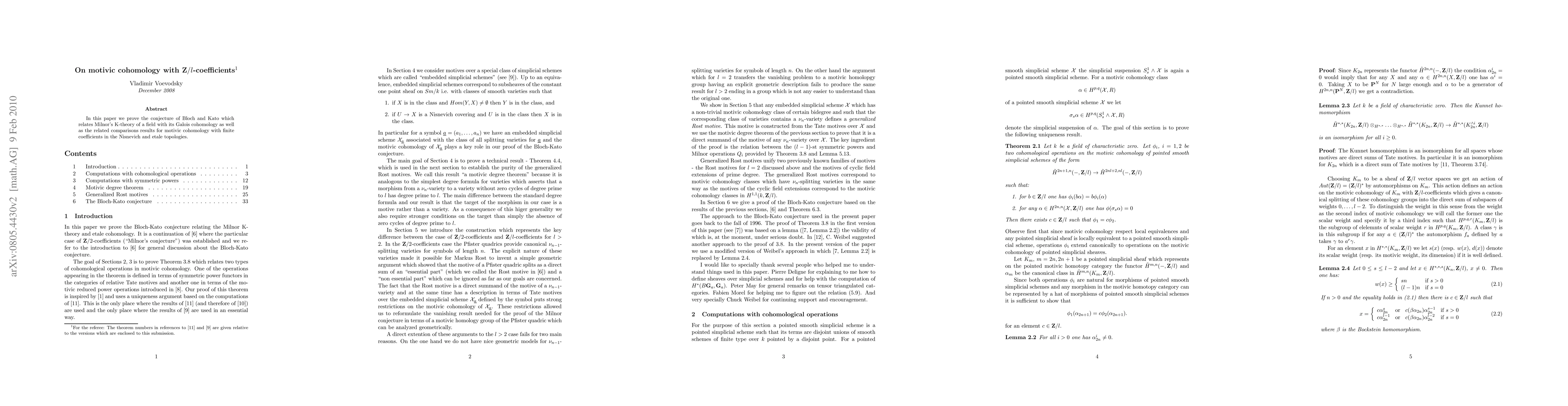 This paper provides a corrected proof of the Bloch-Kato conjecture, establishing a connection between motivic cohomology and étale cohomology using \( \mathbb{Z}/l \) coefficients. The work corrects and refines an earlier version of the same titled paper.