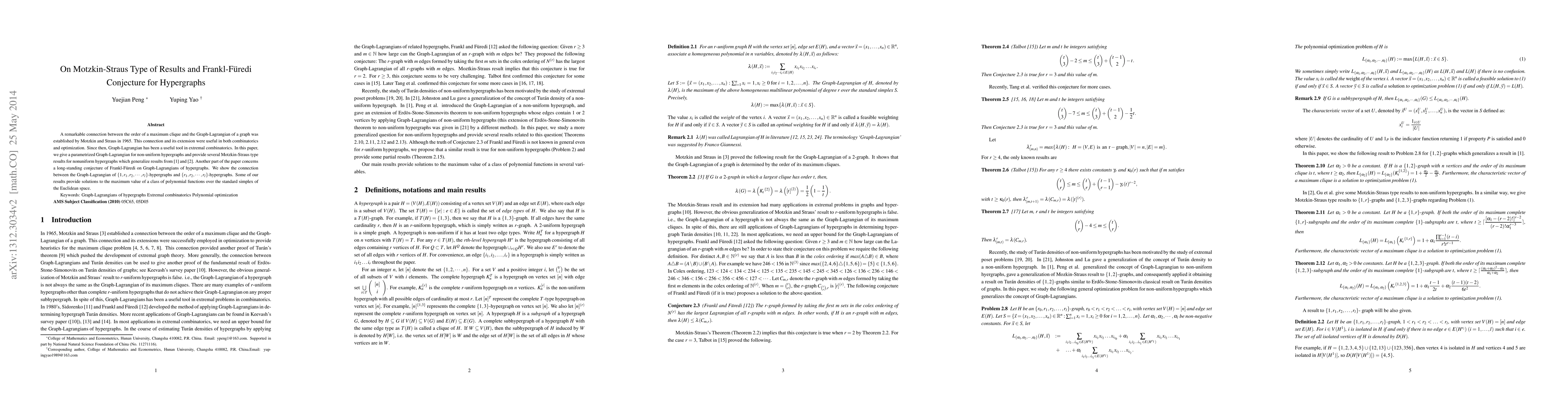 A remarkable connection between the order of a maximum clique and the Graph-Lagrangian of a graph was established by Motzkin and Straus in 1965. This connection and its extension were useful in both combinatorics and optimization. Since then, Graph-Lagrangian has been a useful tool in extremal combinatorics. In this paper, we give a parametrized Graph-Lagrangian for non-uniform hypergraphs and provide several Motzkin-Straus type results for nonuniform hypergraphs which generalize results from [1] and [2]. Another part of the paper concerns a long-standing conjecture of Frankl-F\"uredi on Graph-Lagrangians of hypergraphs. We show the connection between the Graph-Lagrangian of $\{1, r_1, r_2, \cdots, r_l\}$-hypergraphs and $\{ r_1, r_2, \cdots, r_l\}$-hypergraphs. Some of our results provide solutions to the maximum value of a class of polynomial functions over the standard simplex of the Euclidean space.