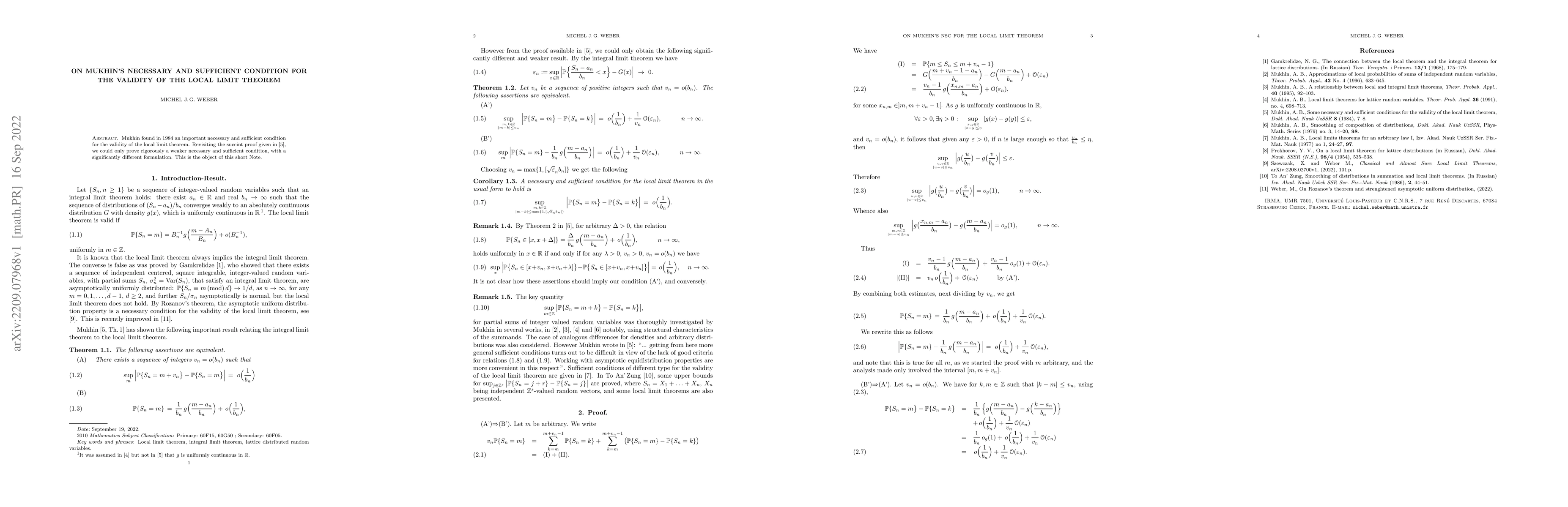 This paper revisits Mukhin's 1984 result on a necessary and sufficient condition for the local limit theorem but finds it impossible to rigorously prove the original condition, instead establishing a weaker but differently formulated necessary and sufficient condition.
