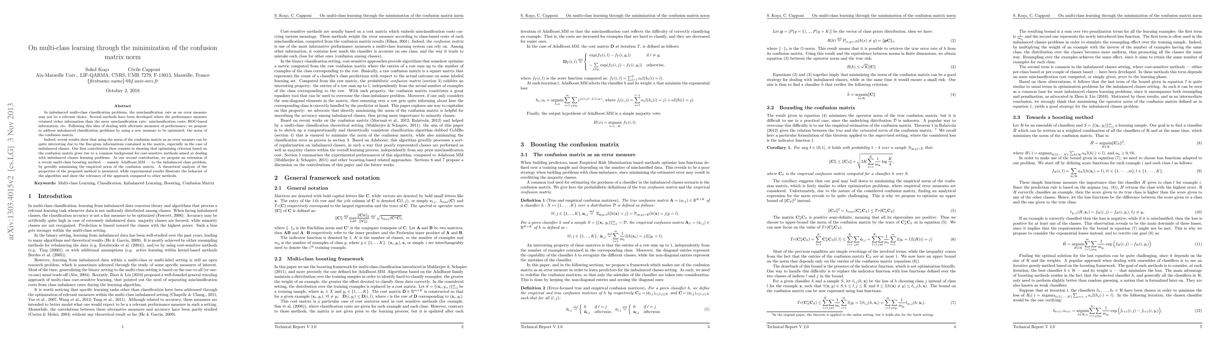 A new approach to imbalanced multi-class classification problems is proposed by optimizing the norm of the confusion matrix, which provides a fine-grain measure of error, improving performance over traditional misclassification rate.