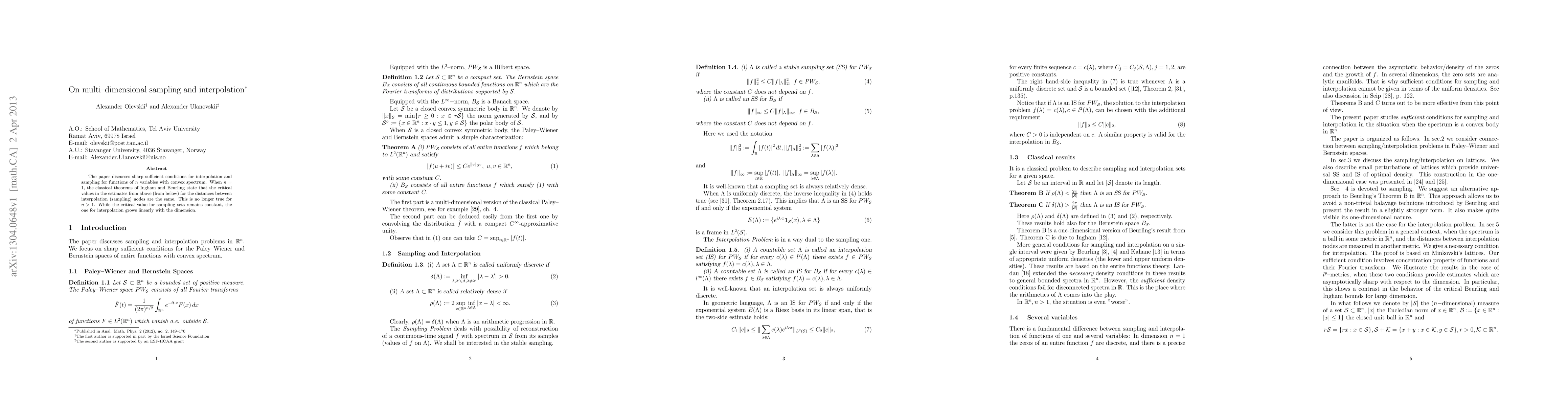 A paper on multi-dimensional sampling and interpolation presents sharp sufficient conditions for functions with convex spectra, finding that critical values differ between n=1 and n>1 dimensions.