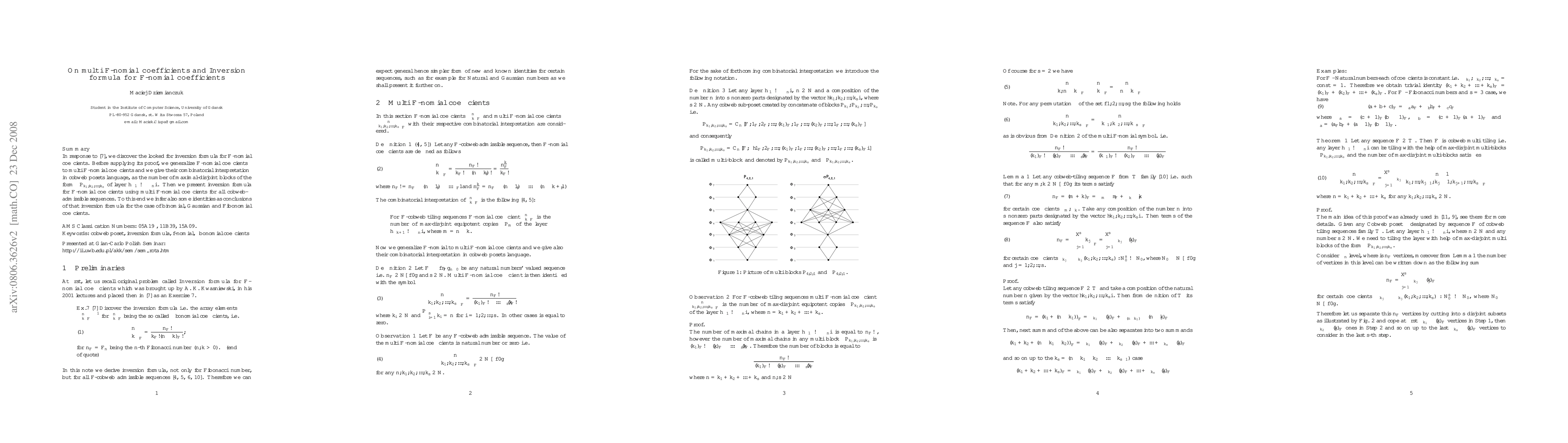 to multi F-nomial coefficients and we give their combinatorial interpretation