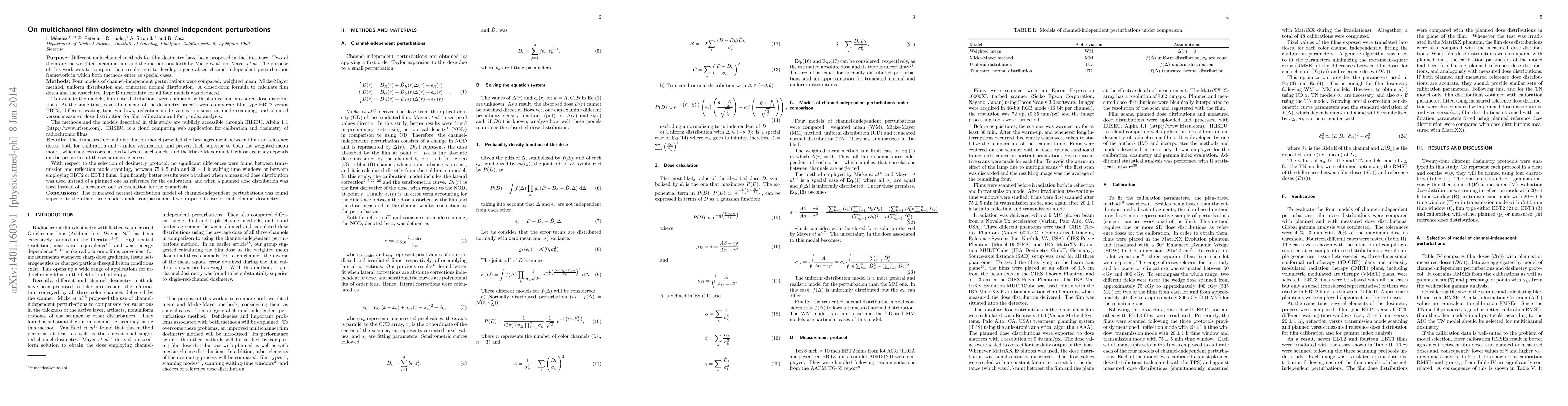 Purpose: Different multichannel methods for film dosimetry have been proposed in the literature. Two of them are the weighted mean method and the method put forth by Micke et al and Mayer et al. The purpose of this work was to compare their results and to develop a generalized channel-independent perturbations framework in which both methods enter as special cases. Methods: Four models of channel-independent perturbations were compared: weighted mean, Micke-Mayer method, uniform distribution and truncated normal distribution. A closed-form formula to calculate film doses and the associated Type B uncertainty for all four models was deduced. To evaluate the models, film dose distributions were compared with planned and measured dose distributions. At the same time, several elements of the dosimetry process were compared: film type EBT2 versus EBT3, different waiting-time windows, reflection mode versus transmission mode scanning, and planned versus measured dose distribution for film calibration and for gamma-index analysis. The methods and the models described in this study are publicly accessible through IRISEU. Alpha 1.1 (http://www.iriseu.com). IRISEU. is a cloud computing web application for calibration and dosimetry of radiochromic films. Results: The truncated normal distribution model provided the best agreement between film and reference doses, both for calibration and gamma-index verification, and proved itself superior to both the weighted mean model, which neglects correlations between the channels, and the Micke-Mayer model, whose accuracy depends on the properties of the sensitometric curves. Conclusions: The truncated normal distribution model of channel-independent perturbations was found superior to the other three models under comparison and we propose its use for multichannel dosimetry.