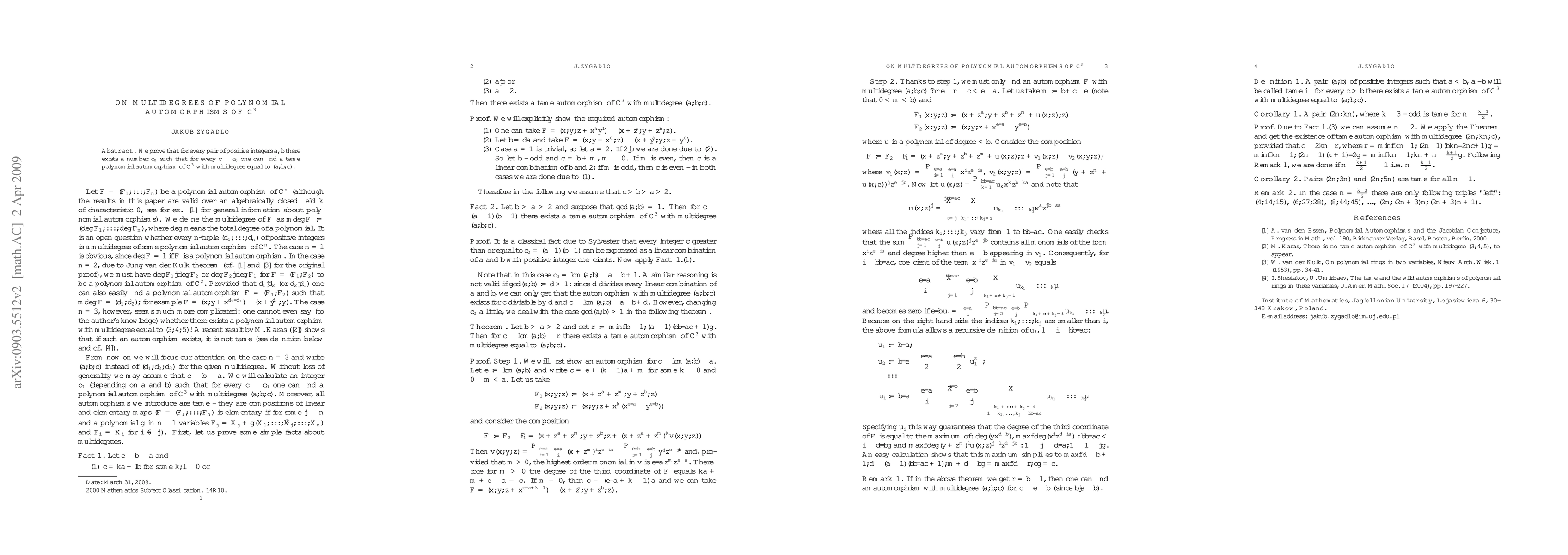 Summary: This paper proves the existence of a tame polynomial automorphism of C^3 for any positive integers a, b, and sufficiently large c, such that the multidegree equals (a, b, c). The result establishes a relationship between the multidegrees of such automorphisms.