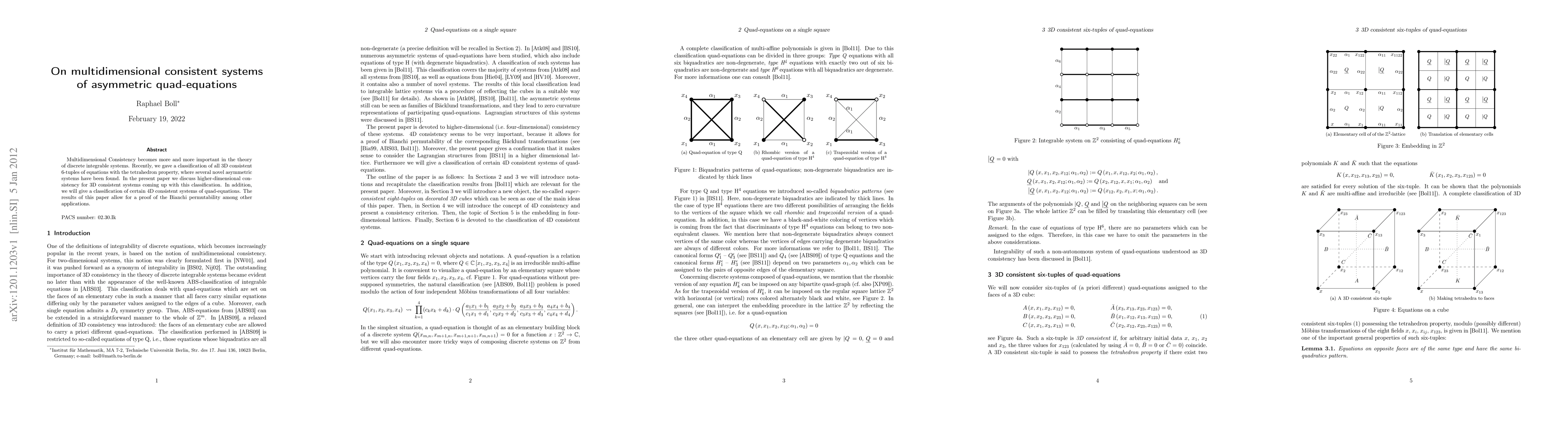 This paper explores higher-dimensional consistency for 3D consistent systems of asymmetric quad-equations, extending previous classifications and introducing new 4D consistent systems. The results facilitate proofs of Bianchi permutability and other applications in discrete integrable systems.