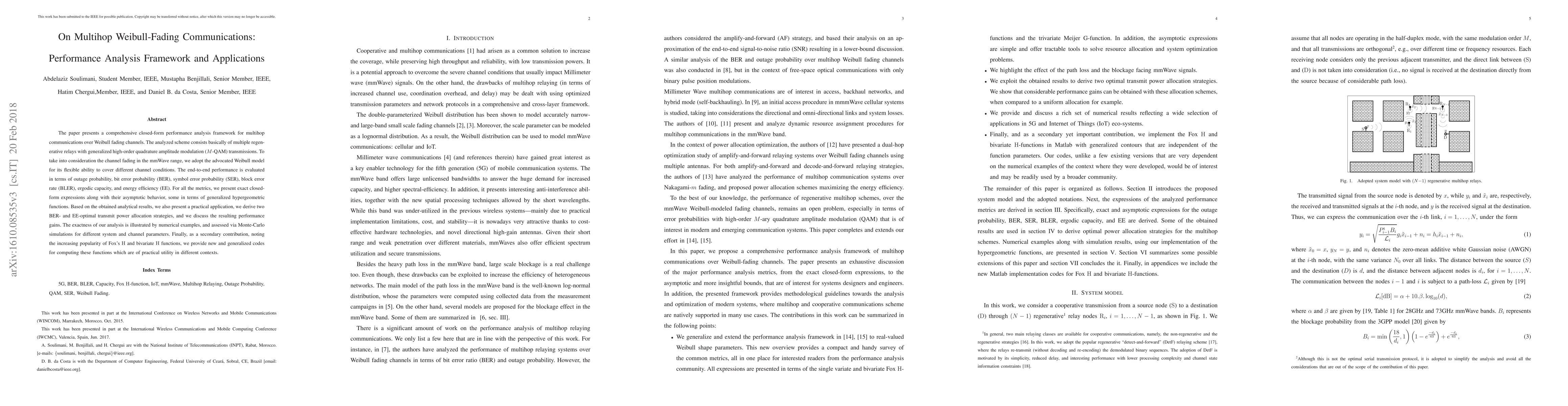 This paper develops a closed-form performance analysis framework for multihop communications over Weibull fading channels, evaluating metrics like outage probability and energy efficiency. It presents optimal power allocation strategies and validates the analysis through numerical examples and Monte-Carlo simulations.