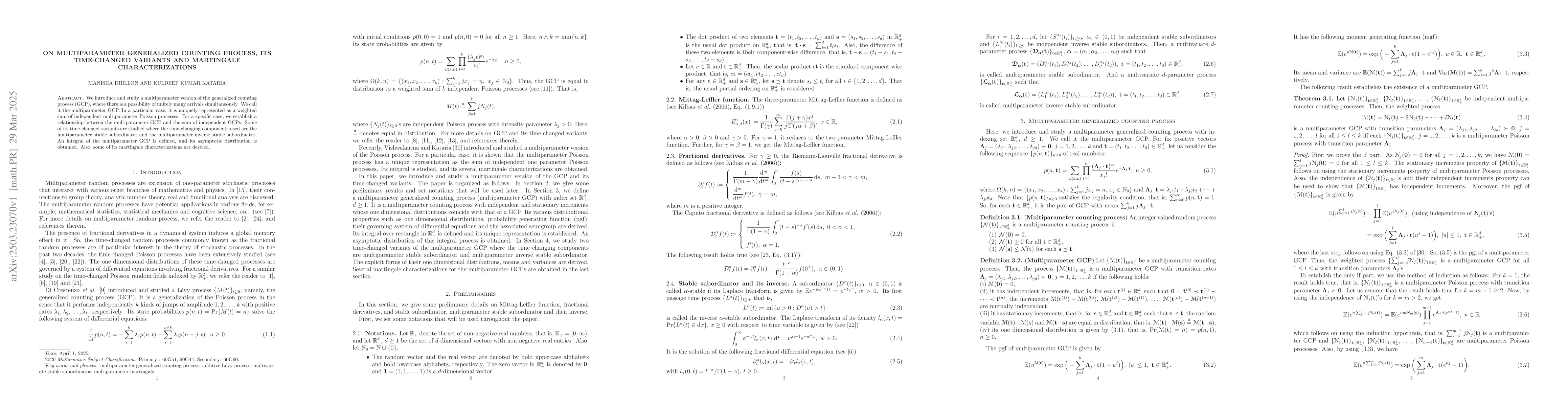 Researchers develop a multiparameter version of the generalized counting process, studying its relationships with Poisson processes and stable subordinators, and finding connections to martingale characterizations.