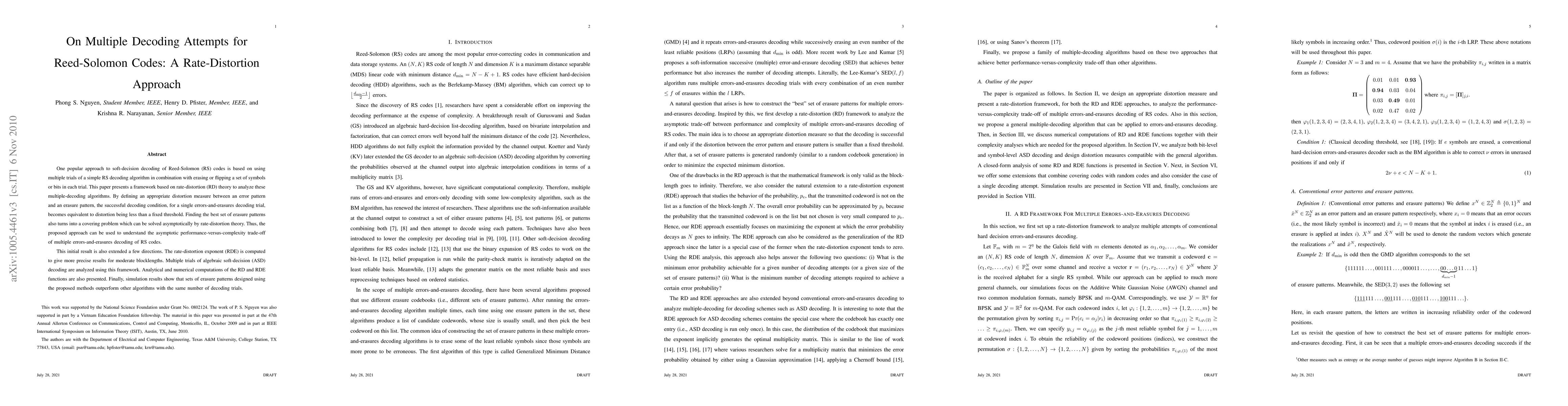 One popular approach to soft-decision decoding of Reed-Solomon (RS) codes is based on using multiple trials of a simple RS decoding algorithm in combination with erasing or flipping a set of symbols or bits in each trial. This paper presents a framework based on rate-distortion (RD) theory to analyze these multiple-decoding algorithms. By defining an appropriate distortion measure between an error pattern and an erasure pattern, the successful decoding condition, for a single errors-and-erasures decoding trial, becomes equivalent to distortion being less than a fixed threshold. Finding the best set of erasure patterns also turns into a covering problem which can be solved asymptotically by rate-distortion theory. Thus, the proposed approach can be used to understand the asymptotic performance-versus-complexity trade-off of multiple errors-and-erasures decoding of RS codes. This initial result is also extended a few directions. The rate-distortion exponent (RDE) is computed to give more precise results for moderate blocklengths. Multiple trials of algebraic soft-decision (ASD) decoding are analyzed using this framework. Analytical and numerical computations of the RD and RDE functions are also presented. Finally, simulation results show that sets of erasure patterns designed using the proposed methods outperform other algorithms with the same number of decoding trials.