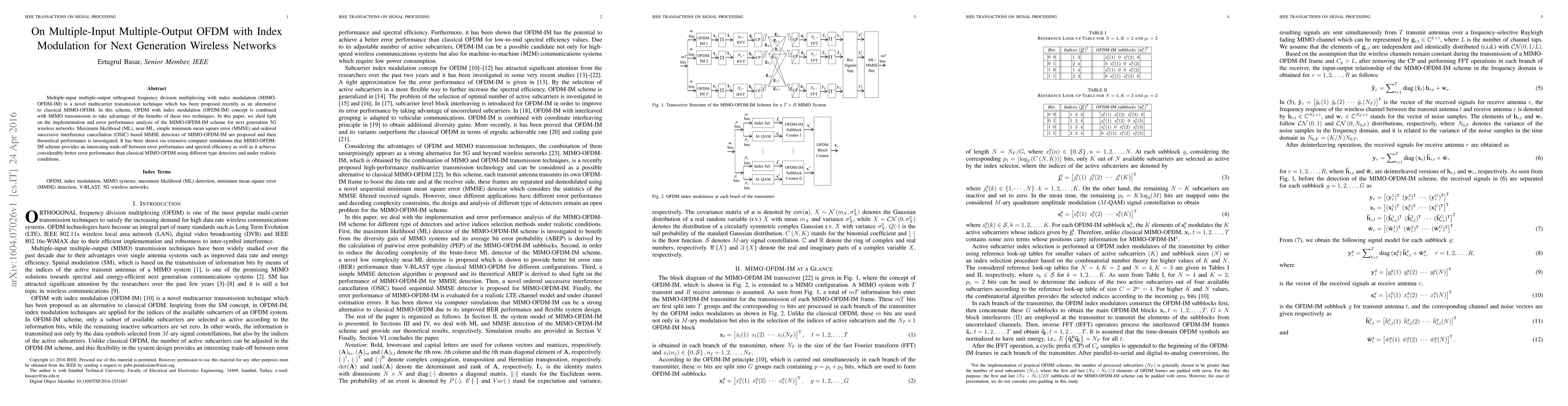This paper proposes a novel MIMO-OFDM-IM technique combining OFDM with index modulation for next-generation 5G networks, presenting various detectors for performance analysis. Simulation results show that MIMO-OFDM-IM offers a favorable trade-off between error performance and spectral efficiency compared to classical MIMO-OFDM.