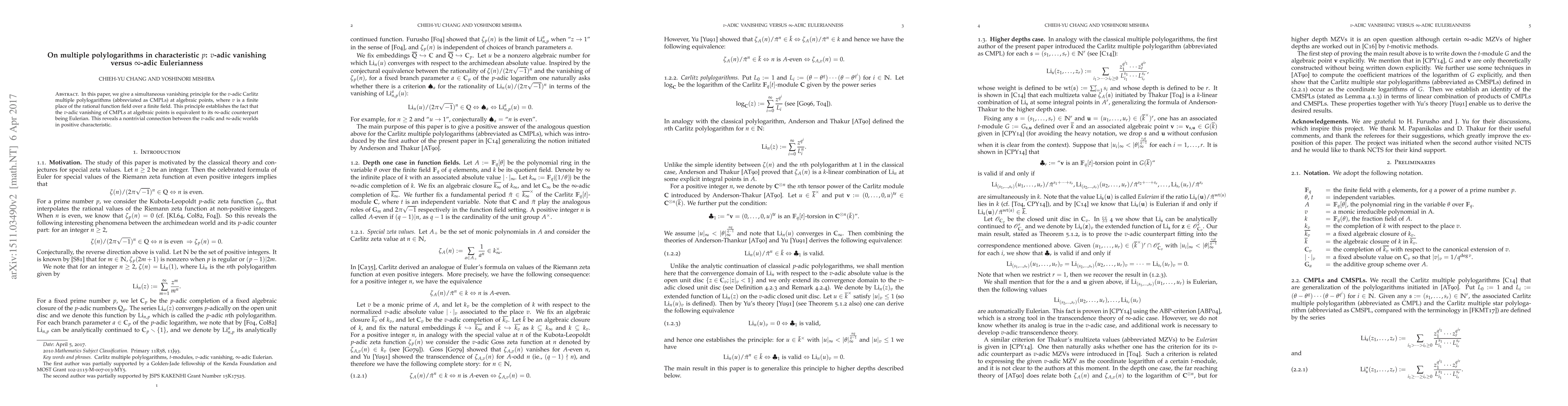 This paper presents a vanishing principle for $v$-adic Carlitz multiple polylogarithms, linking their $v$-adic vanishing at algebraic points to the $\infty$-adic Eulerianness, demonstrating a significant connection between these two realms in positive characteristic.