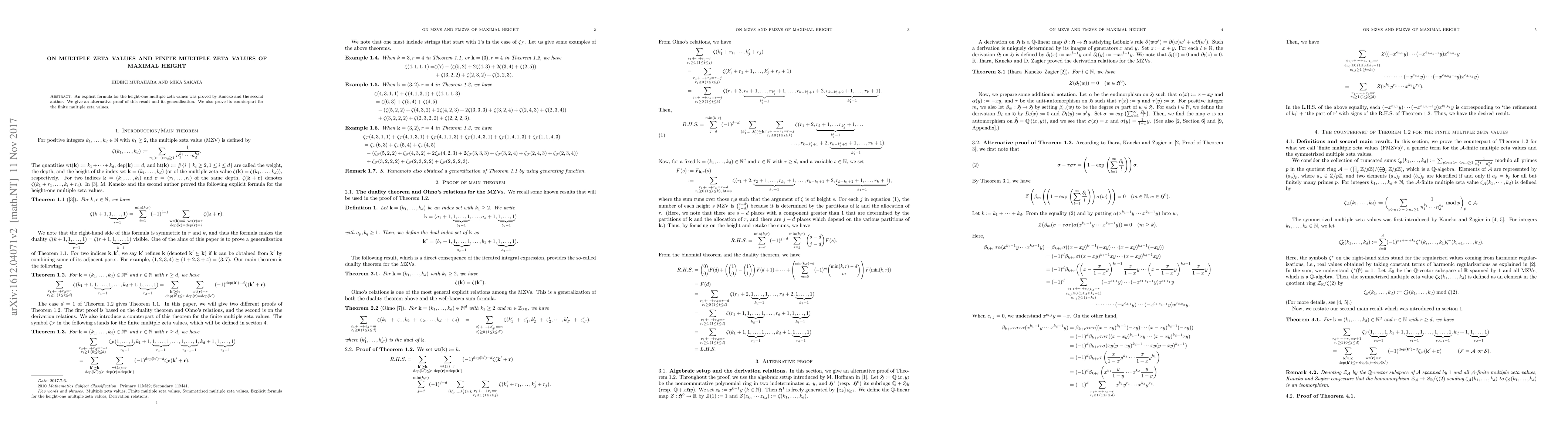 This paper provides an alternative proof for Kaneko's explicit formula on height-one multiple zeta values and extends it to a generalized form. Additionally, it establishes a corresponding result for finite multiple zeta values.