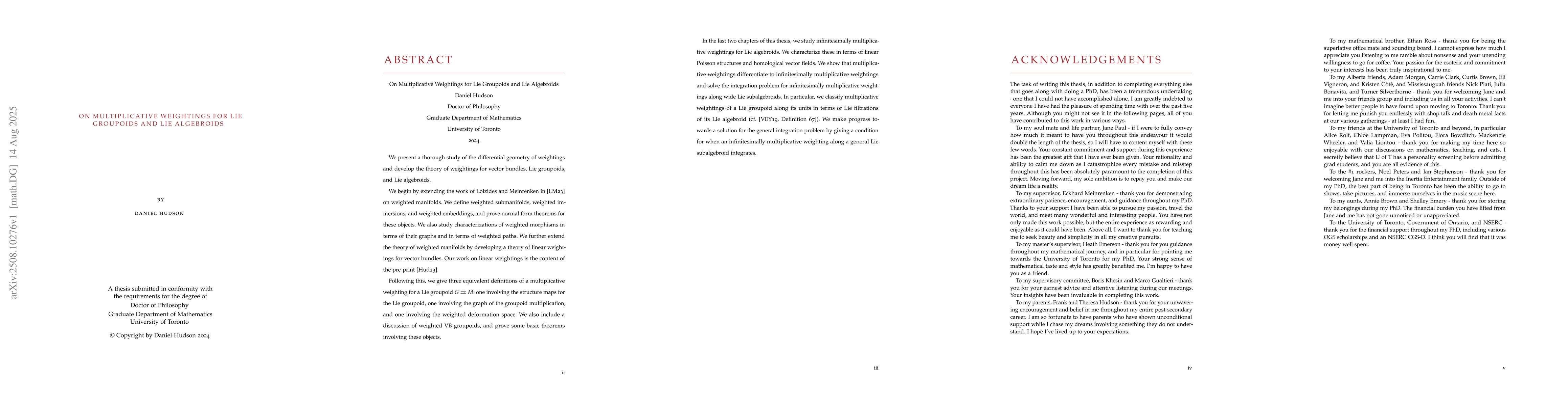 We present a thorough study of the differential geometry of weightings and develop the theory of weightings for vector bundles, Lie groupoids, and Lie algebroids. We begin by extending the work of Loizides and Meinrenken on weighted manifolds. We define weighted submanifolds, weighted immersions, and weighted embeddings, and prove normal form theorems for these objects. We also study characterizations of weighted morphisms in terms of their graphs and in terms of weighted paths. We further extend the theory of weighted manifolds by developing a theory of linear weightings for vector bundles. Following this, we give three equivalent definitions of a multiplicative weighting for a Lie groupoid: one involving the structure maps for the Lie groupoid, one involving the graph of the groupoid multiplication, and one involving the weighted deformation space. We also include a discussion of weighted VB-groupoids, and prove some basic theorems involving these objects. In the last two chapters of this thesis, we study infinitesimally multiplicative weightings for Lie algebroids. We characterize these in terms of linear Poisson structures and homological vector fields. We show that multiplicative weightings differentiate to infinitesimally multiplicative weightings and solve the integration problem for infinitesimally multiplicative weightings along wide Lie subalgebroids. In particular, we classify multiplicative weightings of a Lie groupoid along its units in terms of Lie filtrations of its Lie algebroid. We make progress towards a solution for the general integration problem by giving a condition for when an infinitesimally multiplicative weighting along a general Lie subalgebroid integrates.