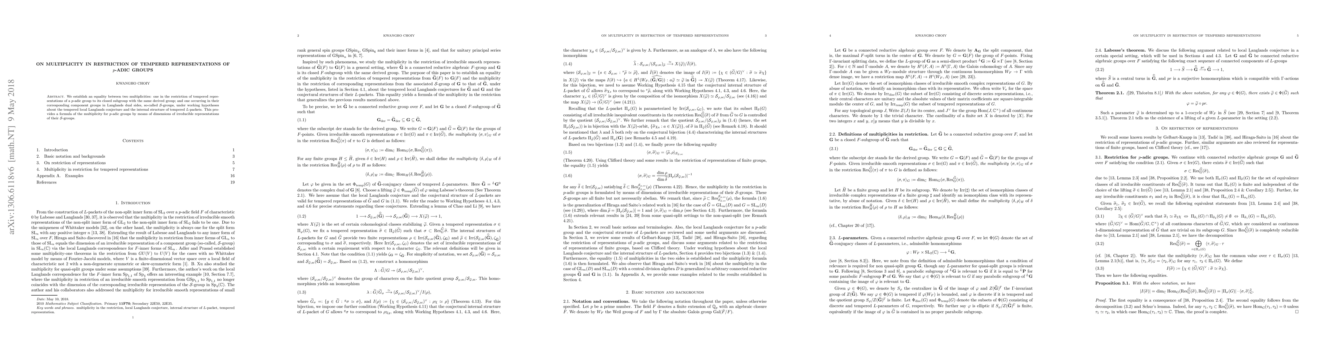 This paper establishes an equality between two multiplicities in the context of $p$-adic groups: one in restricting tempered representations to a closed subgroup, and another in the Langlands dual $\mathcal{S}$-groups. This result provides a formula linking the multiplicity of representations to dimensions of irreducible representations of $\mathcal{S}$-groups, assuming the tempered local Langlands conjecture and the structure of $L$-packets.