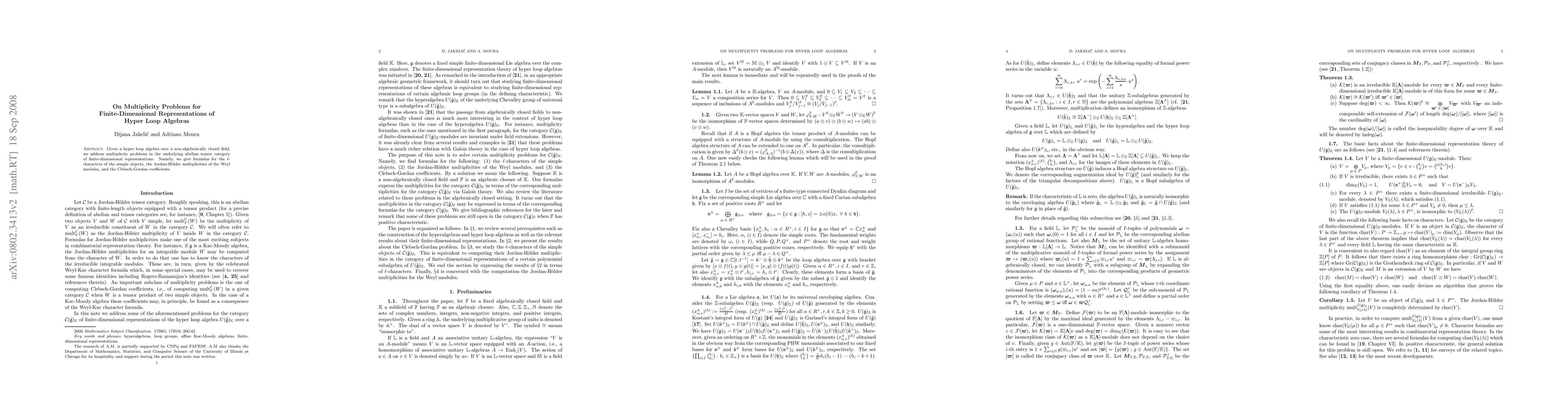 Given a hyper loop algebra over a non-algebraically closed field, we address multiplicity problems in the underlying abelian tensor category of finite-dimensional representations. Namely, we give formulas for the l-characters of the simple objects, the Jordan-Holder multiplicities of the Weyl modules, and the Clebsch-Gordan coefficients.
