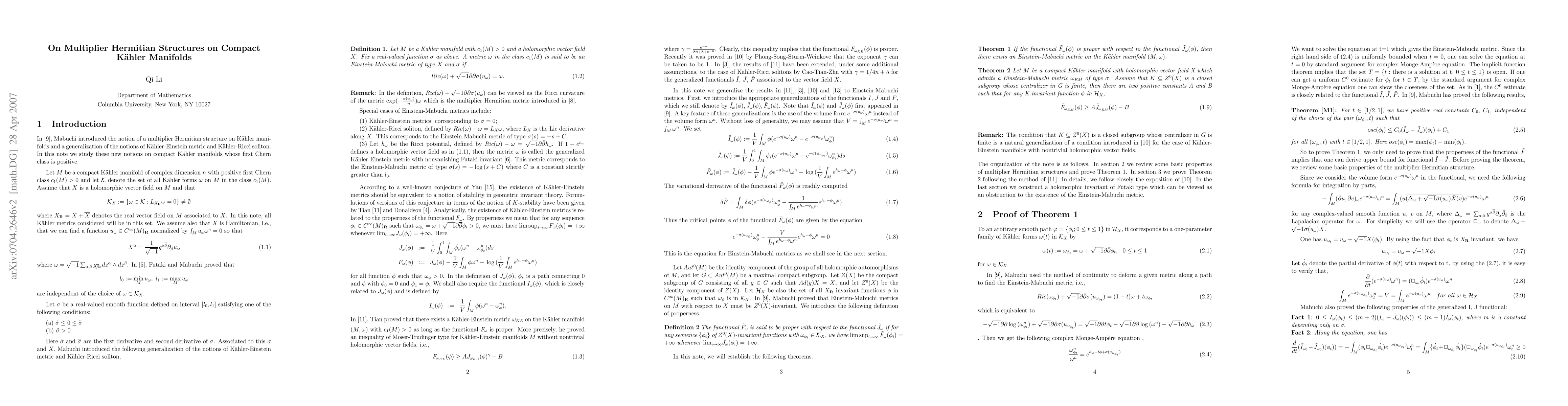 Mabuchi introduced multiplier Hermitian structures on compact Kahler manifolds and defined metrics similar to Kahler-Einstein metrics under these structures. In this note we generalize the inequality of Moser-Trudinger type on Kahler-Einstein manifolds to this case.