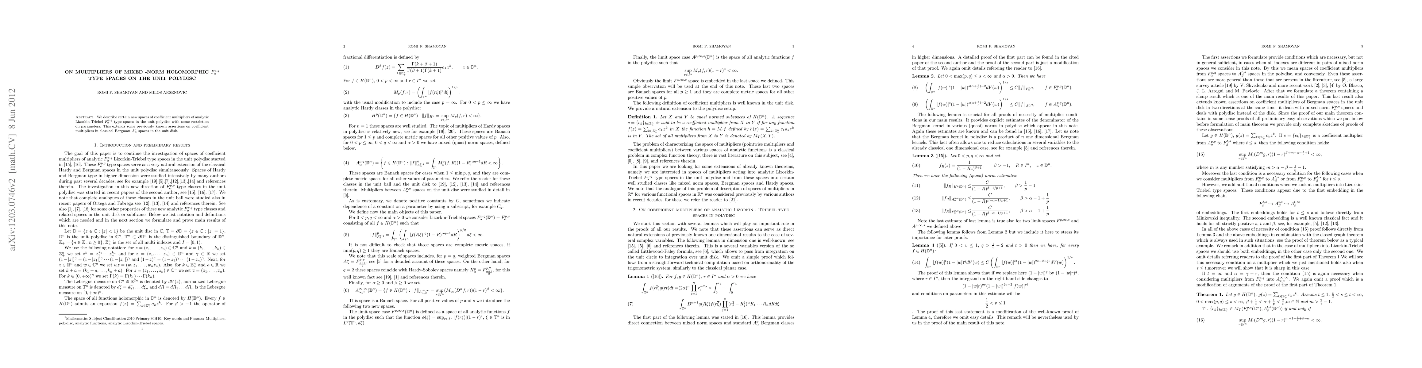 Summary: This paper introduces new coefficient multiplier spaces for analytic Lizorkin-Triebel $F^{p,q}_{\alpha}$ type spaces in the unit polydisk, extending previous findings on Bergman type spaces in the unit disk. The study imposes specific parameter restrictions on these multipliers.