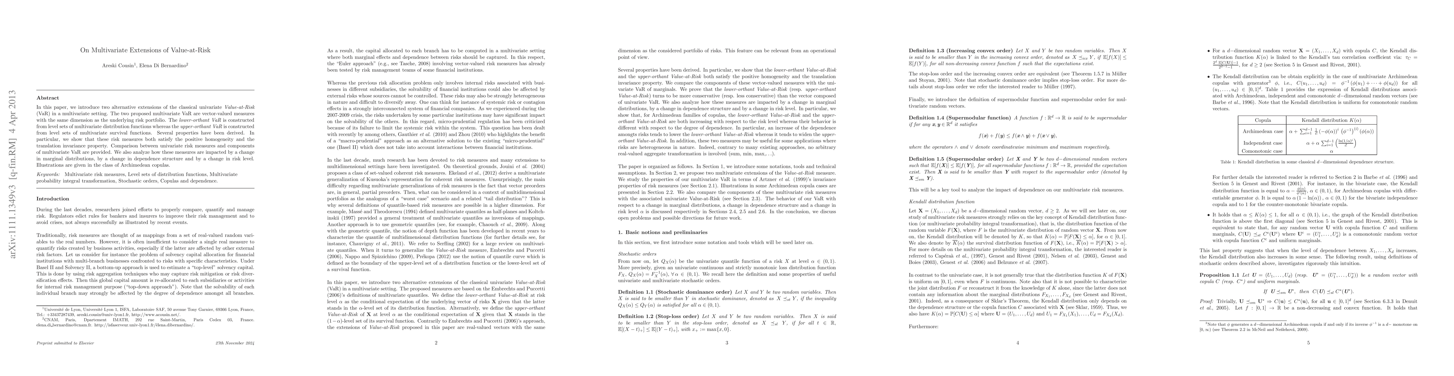 This paper proposes two multivariate extensions of the univariate Value-at-Risk (VaR): lower-orthant VaR and upper-orthant VaR, both maintaining the dimension of the risk portfolio. It demonstrates their properties, including positive homogeneity and translation invariance, and compares them to univariate measures, analyzing their sensitivity to changes in marginal distributions, dependence structure, and risk levels using Archimedean copulas.