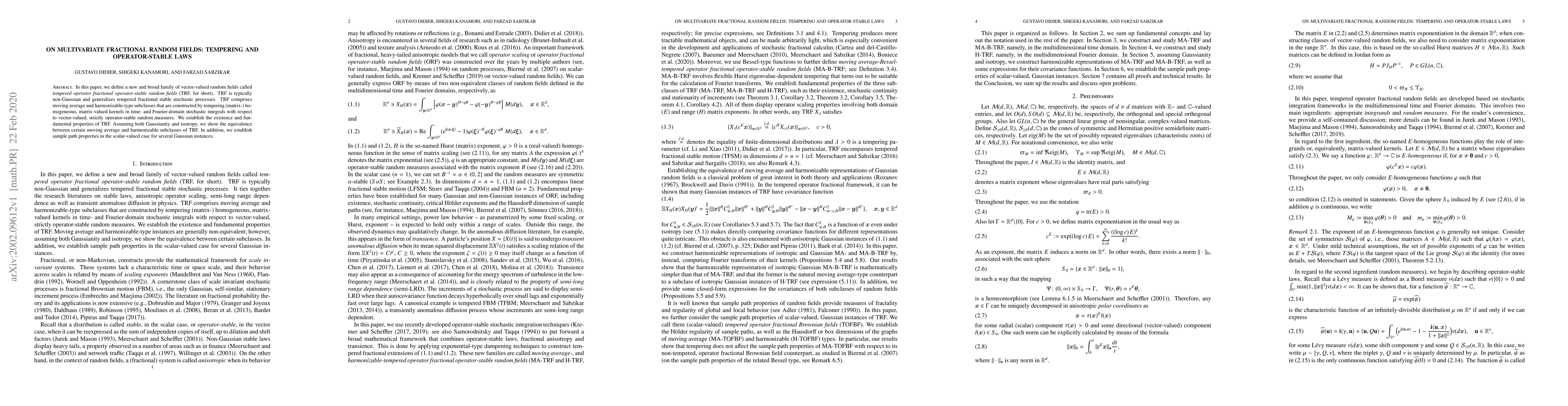 This paper introduces a new class of vector-valued random fields called tempered operator fractional random fields (TRF), which generalizes tempered fractional stable processes. The authors establish the existence and fundamental properties of TRF, and demonstrate equivalence between certain subclasses under Gaussianity and isotropy, along with sample path properties for Gaussian instances.