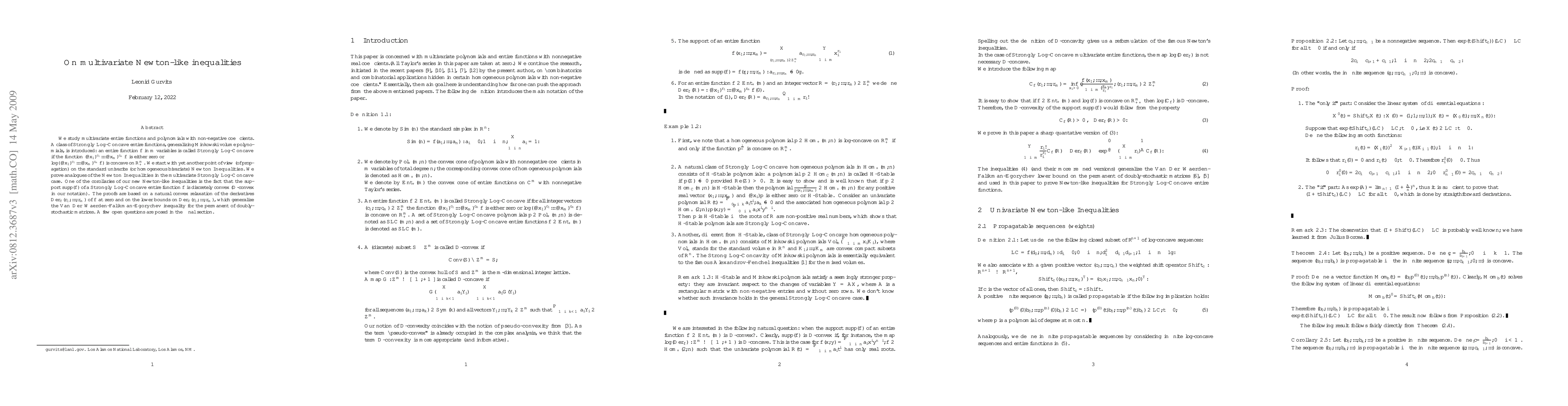 This paper introduces a class of strongly log-concave entire functions in m variables, proving analogues of Newton inequalities that imply support convexity, with implications for multivariate analysis and optimization.