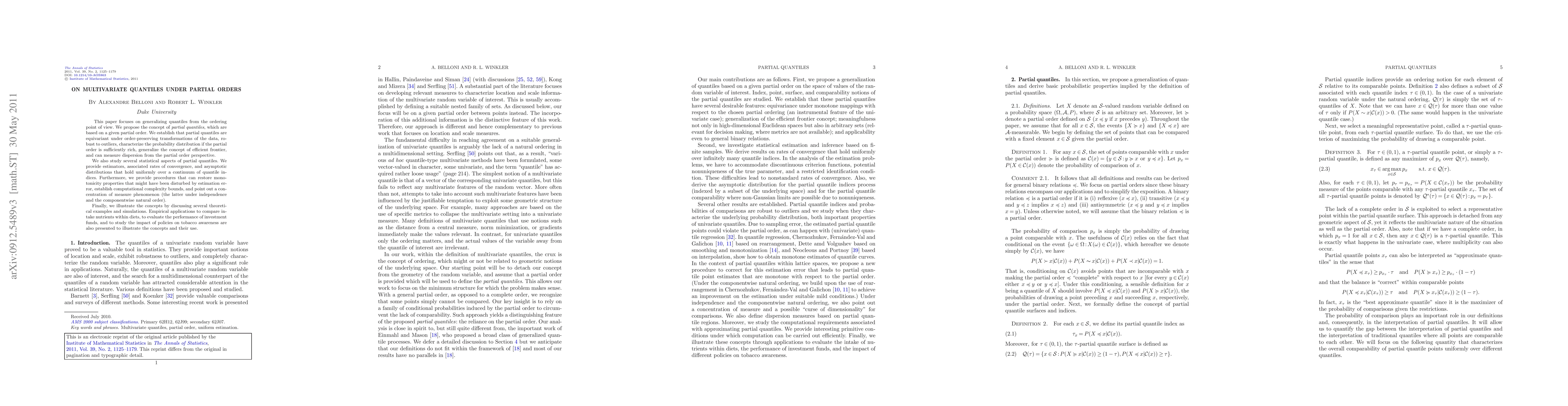 This paper introduces partial quantiles based on partial orders, demonstrating their robustness and statistical properties, and providing estimators and convergence rates. It also explores applications in diet analysis, investment fund performance, and policy impact studies.