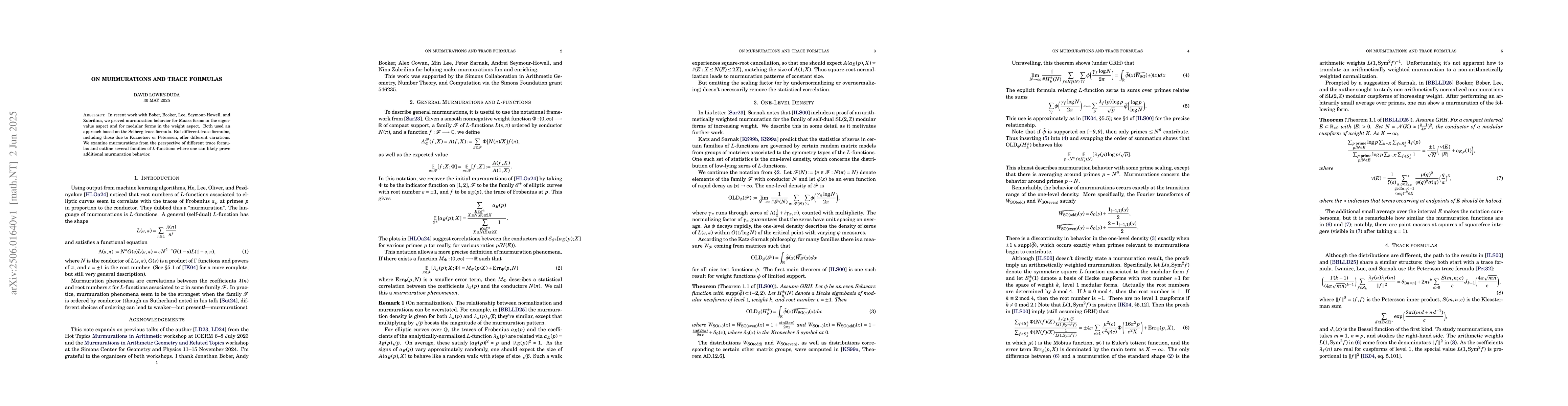 Researchers explore how different trace formulas influence murmuration behavior in mathematics, suggesting new $L$-function families to study.