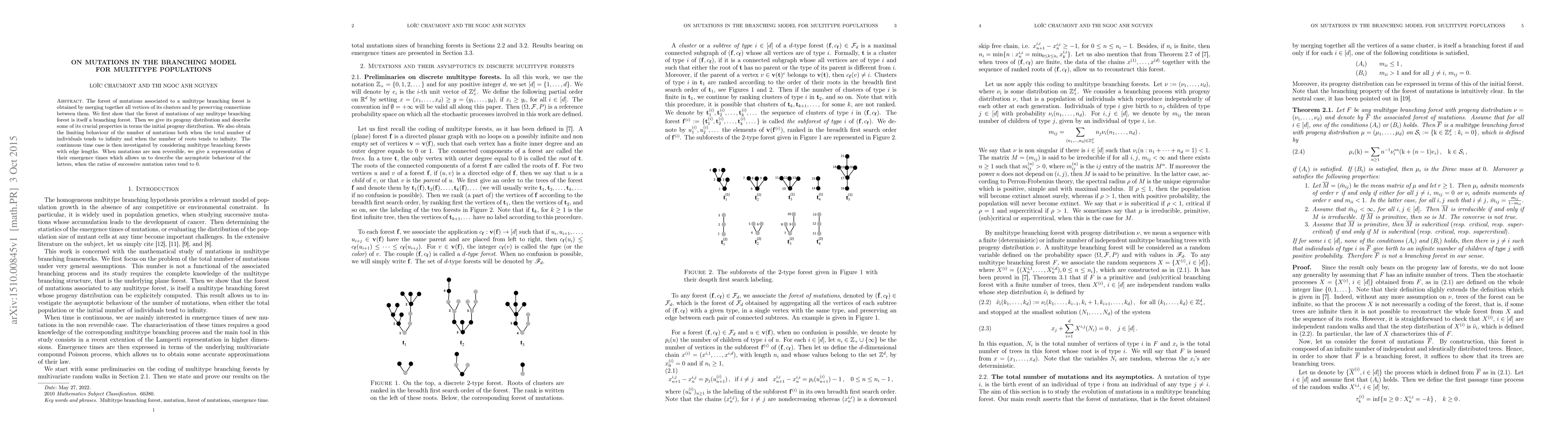 This paper studies mutations in multitype branching models for populations, finding that their forest of mutations is also a branching forest with predictable progeny distributions and limiting behavior.