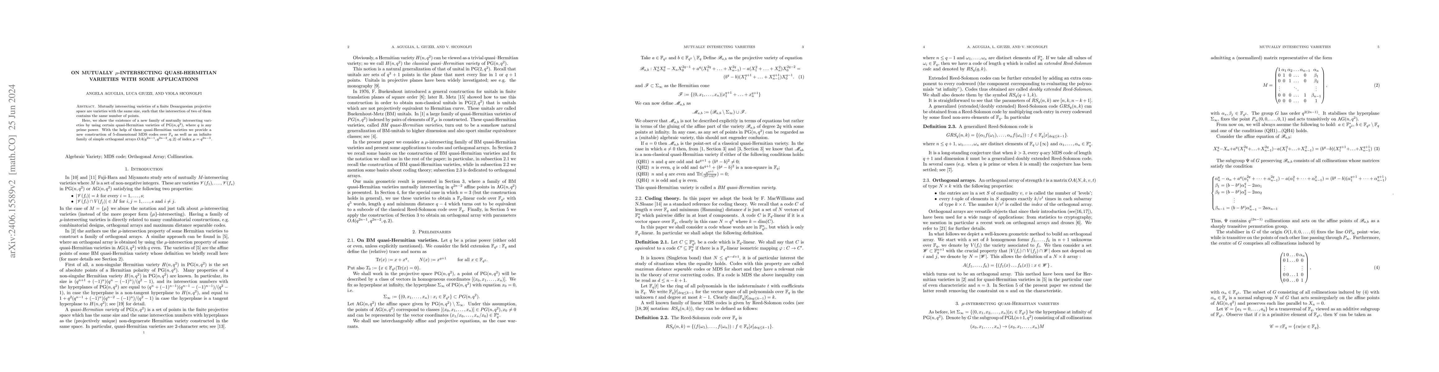 Mutually intersecting varieties of a finite Desarguesian projective space are varieties with the same size, such that the intersection of two of them contains the same number of points. Here, we show the existence of a new family of mutually intersecting varieties by using certain quasi-Hermitian varieties of $\mathrm{PG}(n,q^2)$, where $q$ is any prime power. With the help of these quasi-Hermitian varieties we provide a new construction of $5$-dimensional MDS codes over ${\mathbb F}_q$ as well as an infinite family of simple orthogonal arrays $OA(q^{2n-1},q^{2n-2},q,2)$ of index $\mu=q^{2n-3}$.