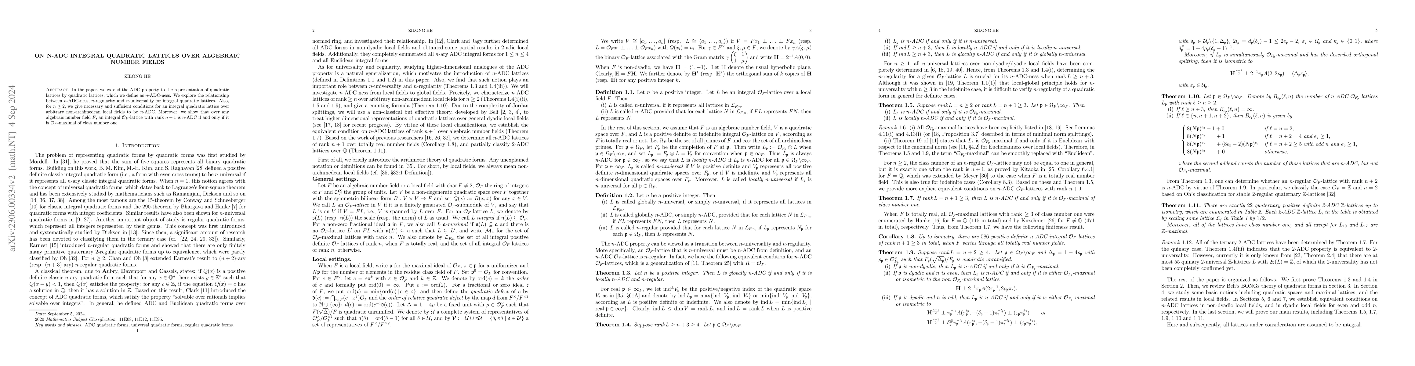 This paper extends the ADC property to $n$-ADC integral quadratic lattices over totally real number fields, exploring connections with $n$-regularity and $n$-universality. It provides necessary and sufficient conditions for $n$-ADCness in lattices of rank $n+1$ and $n+2$ over local fields, and establishes that a positive definite lattice of rank $n+1$ over a totally real number field is $n$-ADC if and only if it is $\mathcal{O}_{F}$-maximal with class number one.