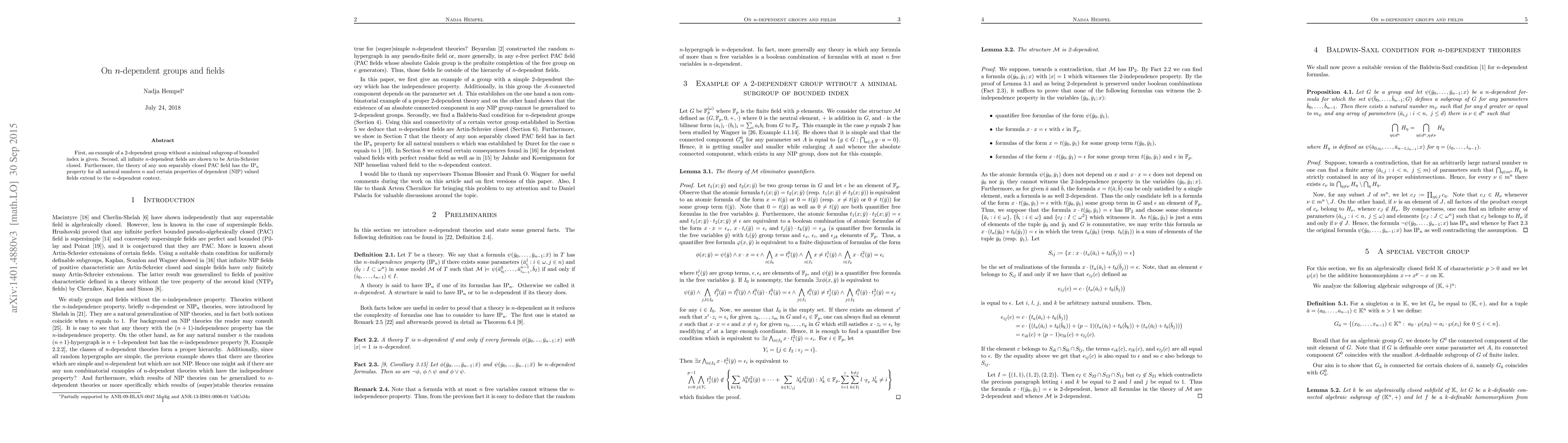 First, an example of a 2-dependent group without a minimal subgroup of bounded index is given. Second, all infinite n-dependent fields are shown to be Artin-Schreier closed. Furthermore, the theory of any non separably closed PAC field has the IPn property for all natural numbers n and certain properties of dependent (NIP) valued fields extend to the n-dependent context.