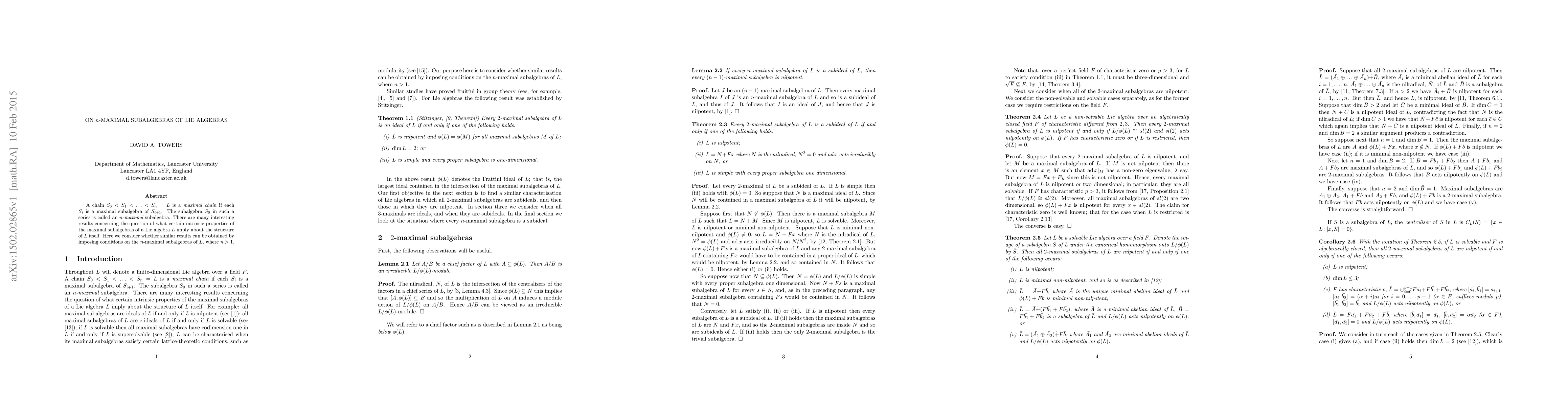 A chain $S_0 < S_1 < \ldots < S_n = L$ is a {\em maximal chain} if each $S_i$ is a maximal subalgebra of $S_{i+1}$. The subalgebra $S_0$ in such a series is called an {\em $n$-maximal} subalgebra. There are many interesting results concerning the question of what certain intrinsic properties of the maximal subalgebras of a Lie algebra $L$ imply about the structure of $L$ itself. Here we consider whether similar results can be obtained by imposing conditions on the $n$-maximal subalgebras of $L$, where $n>1$.