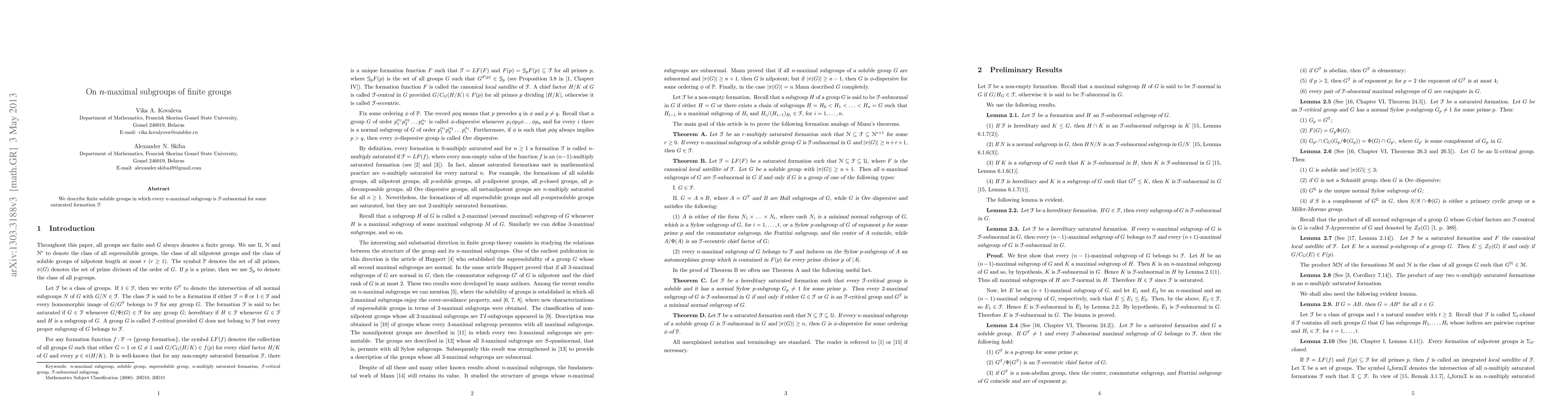 Summary: The paper investigates finite soluble groups where every $n$-maximal subgroup is $\mathfrak F$-subnormal, providing a detailed analysis of their structural properties.