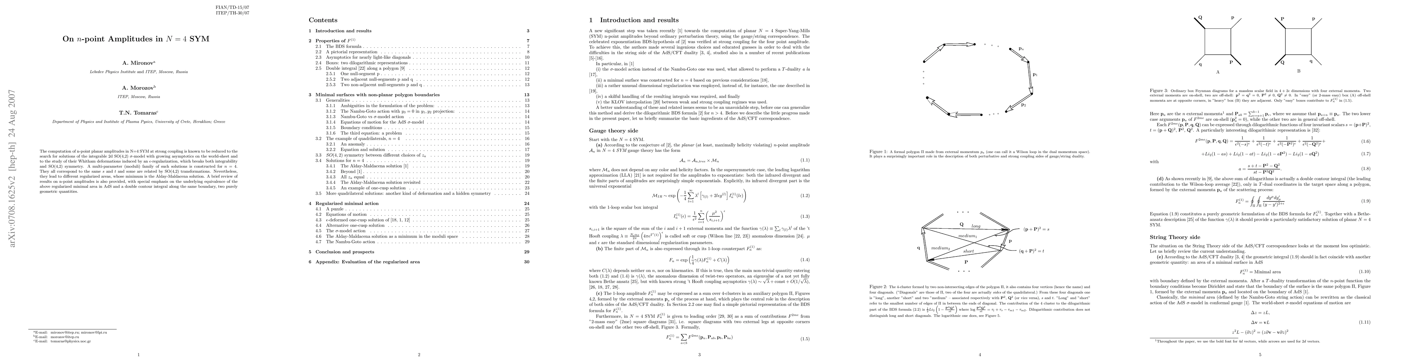 Researchers studied n-point amplitudes in N=4 SYM at strong coupling, finding a family of solutions that lead to different regularized areas, with the minimum corresponding to the Alday-Maldacena solution, which relates to AdS geometry.