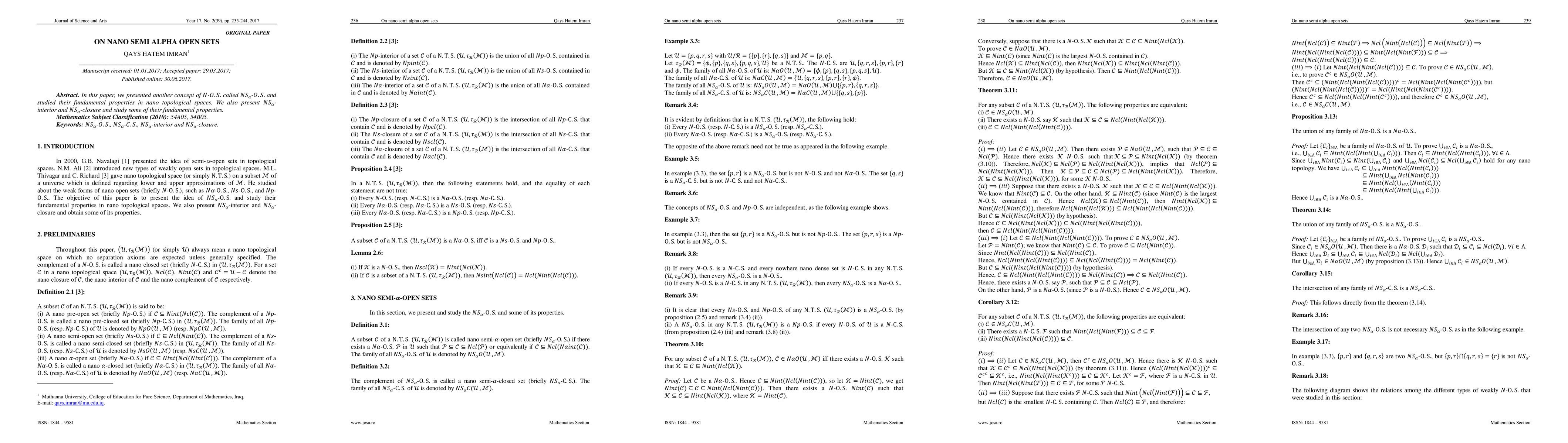 Summary: The paper introduces NSα-Open Sets in nano topological spaces, exploring their fundamental properties, along with NSα-interior and NSα-closure, and examining their inherent characteristics.