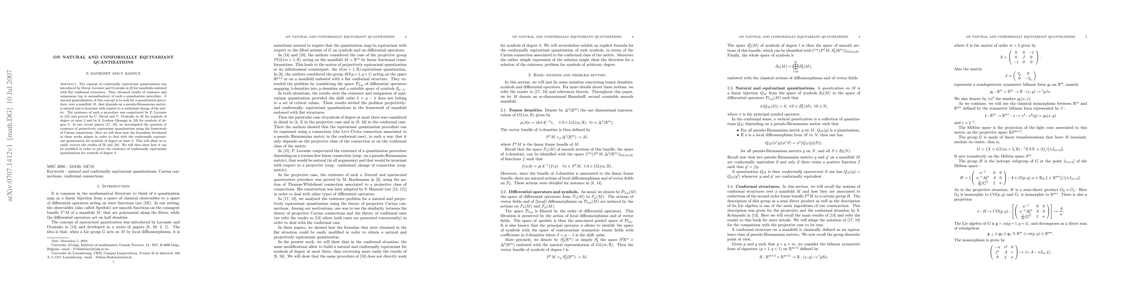 This paper extends the framework for conformally equivariant quantizations, proving their existence for symbols of degree at most 3 and introducing a method to extend this to degree 4. The authors adapt previous results on projectively equivariant quantizations to the conformal setting, recovering earlier findings and extending the scope of conformally equivariant quantizations.