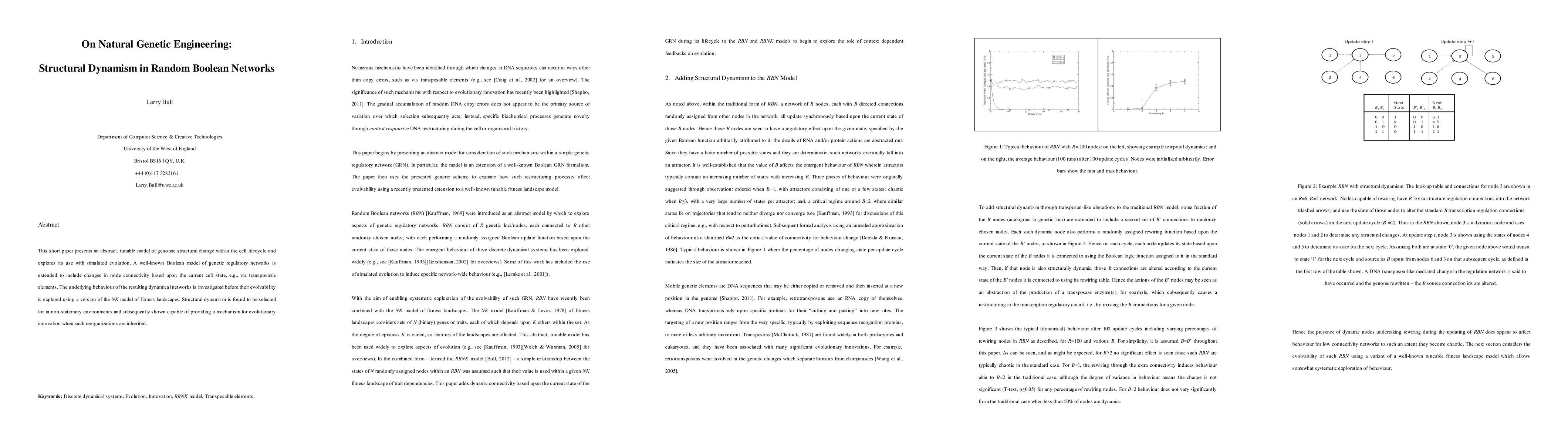 This short paper presents an abstract, tunable model of genomic structural change within the cell lifecycle and explores its use with simulated evolution. A well-known Boolean model of genetic regulatory networks is extended to include changes in node connectivity based upon the current cell state, e.g., via transposable elements. The underlying behaviour of the resulting dynamical networks is investigated before their evolvability is explored using a version of the NK model of fitness landscapes. Structural dynamism is found to be selected for in non-stationary environments and subsequently shown capable of providing a mechanism for evolutionary innovation when such reorganizations are inherited.