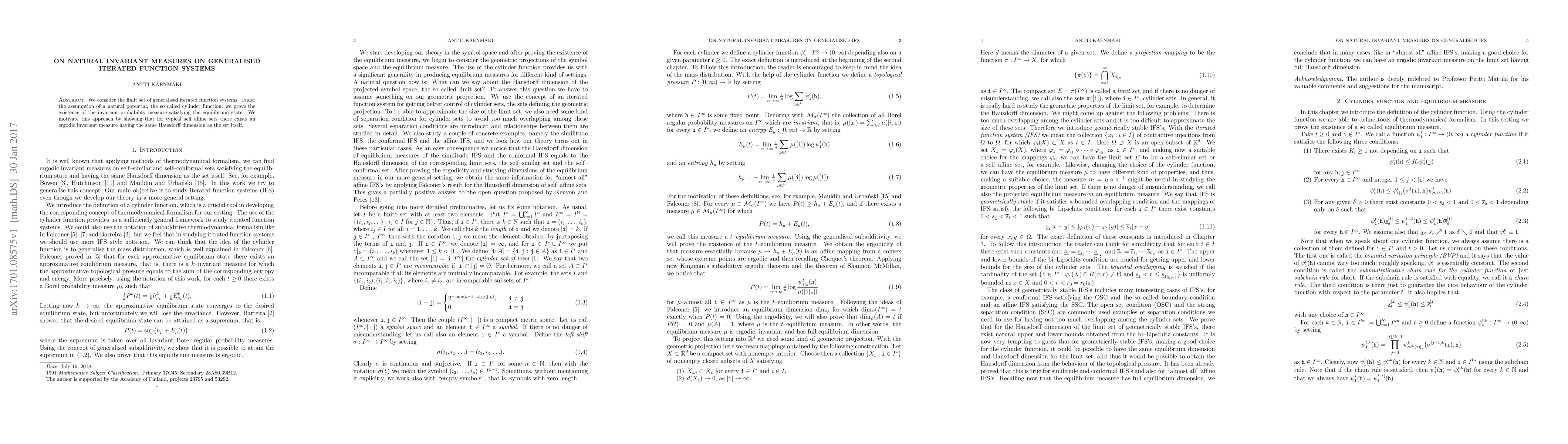 We consider the limit set of generalised iterated function systems. Under the assumption of a natural potential, the so called cylinder function, we prove the existence of the invariant probability measure satisfying the equilibrium state. We motivate this approach by showing that for typical self-affine sets there exists an ergodic invariant measure having the same Hausdorff dimension as the set itself.