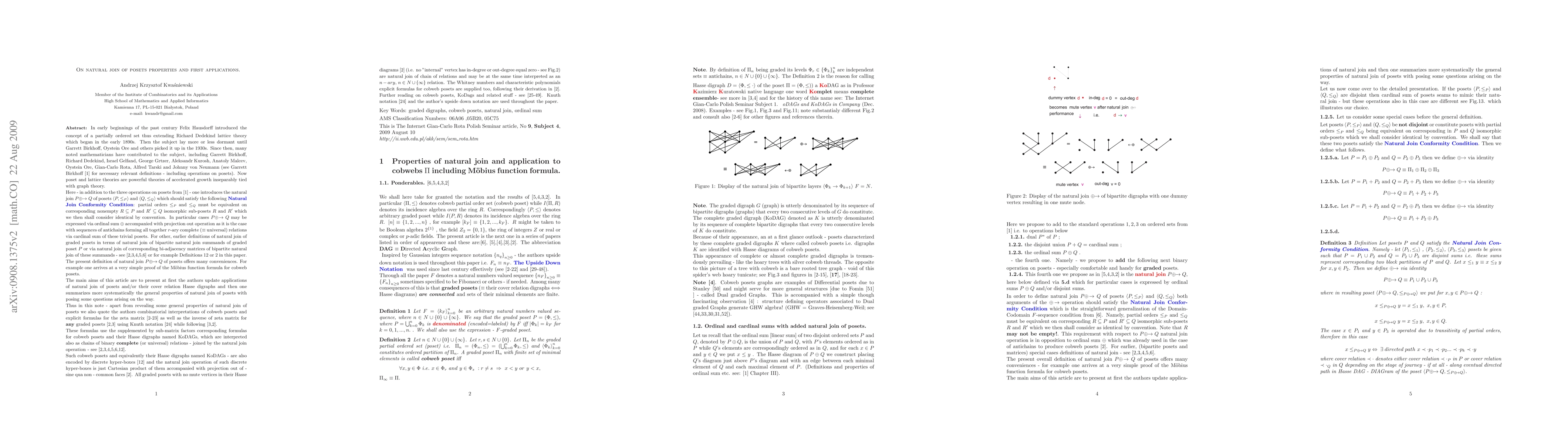This paper introduces the natural join operation for posets, particularly focusing on graded posets and cobweb posets. It summarizes the properties of this operation and provides combinatorial interpretations, explicit formulas for zeta functions, and Whitney numbers for graded posets.