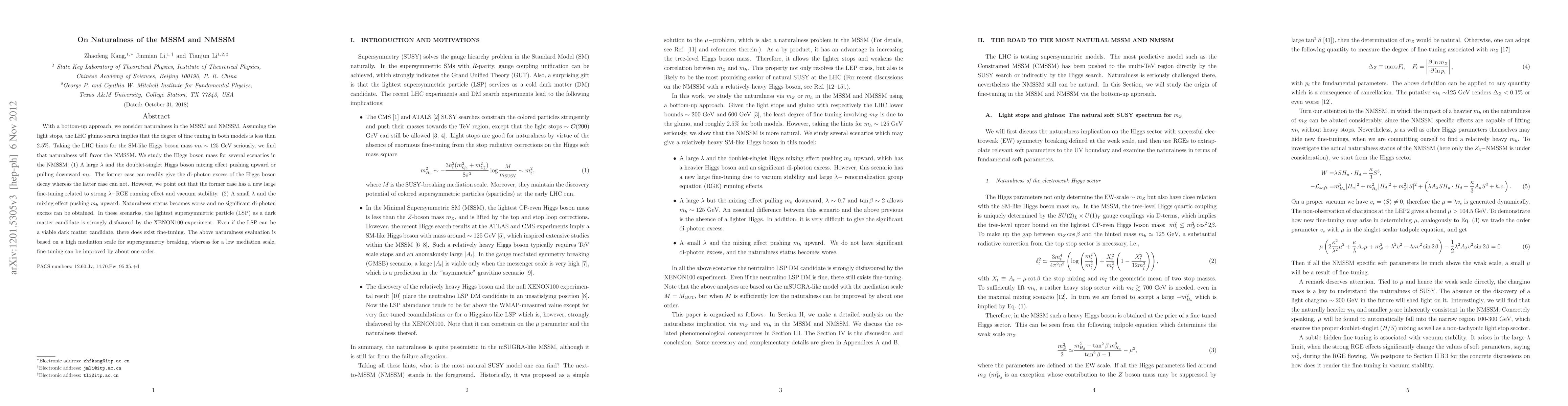 This paper examines naturalness in the Minimal Supersymmetric Standard Model (MSSM) and Next-to-Minimal Supersymmetric Standard Model (NMSSM), finding that naturalness is better satisfied in the NMSSM, especially under scenarios with a large λ and significant Higgs boson mixing effects. However, such scenarios introduce new challenges regarding fine-tuning and vacuum stability.