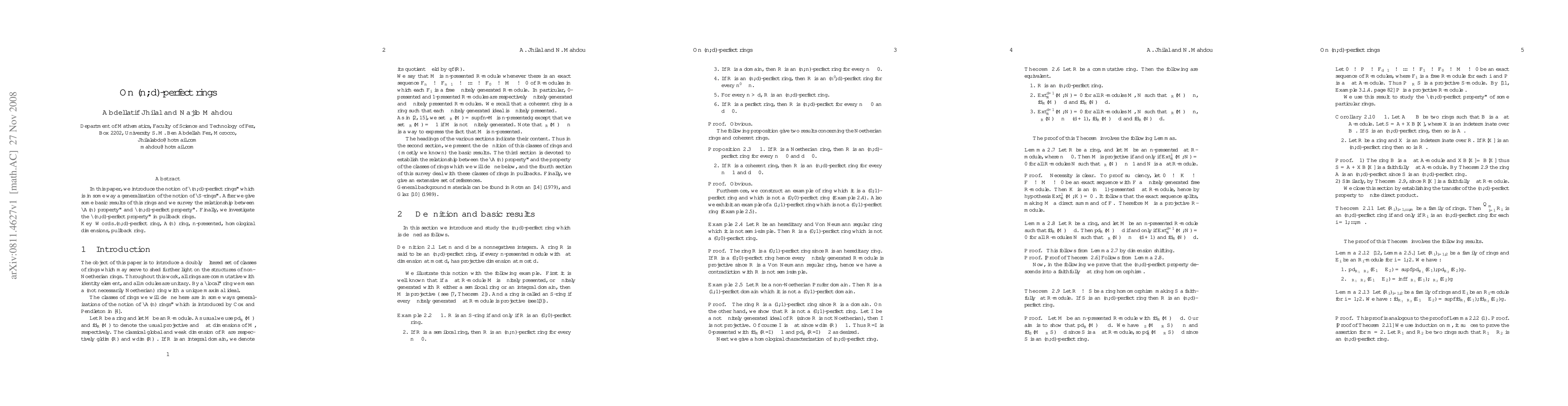 In this paper, we introduce the notion of "(n,d)-perfect rings" which is in some way a generalization of the notion of "S-rings". After we give some basic results of this rings and we survey the relationship between "A(n) property" and "(n,d)-perfect property". Finally, we investigate the "(n,d)-perfect property" in pullback rings.