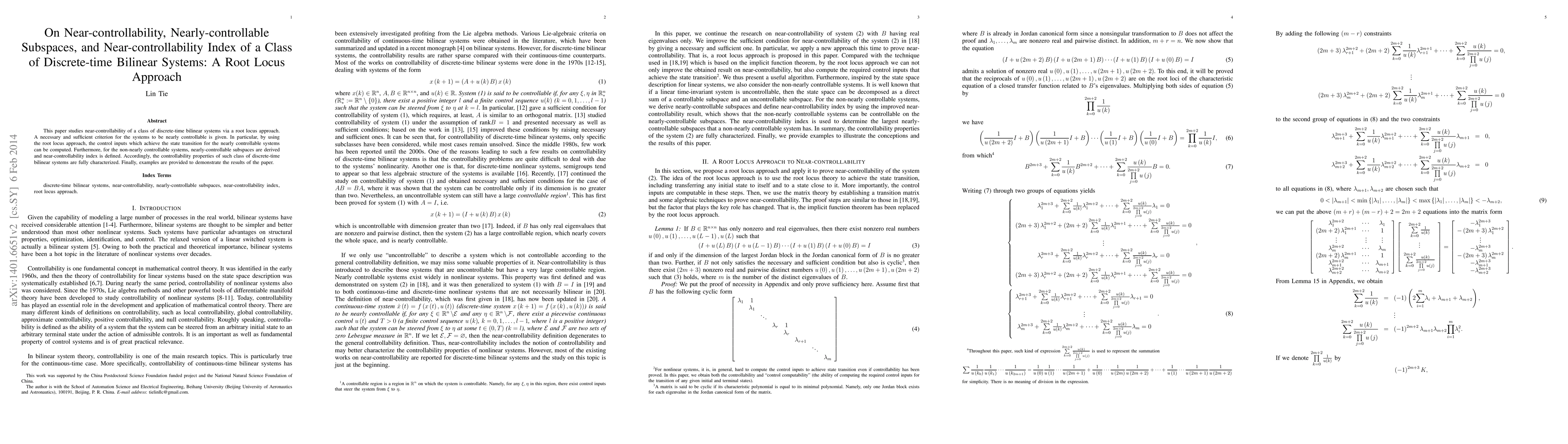 This paper investigates near-controllability of discrete-time bilinear systems using a root locus approach, providing a criterion for nearly controllable systems and defining near-controllability index for non-nearly controllable ones. Examples illustrate the findings.