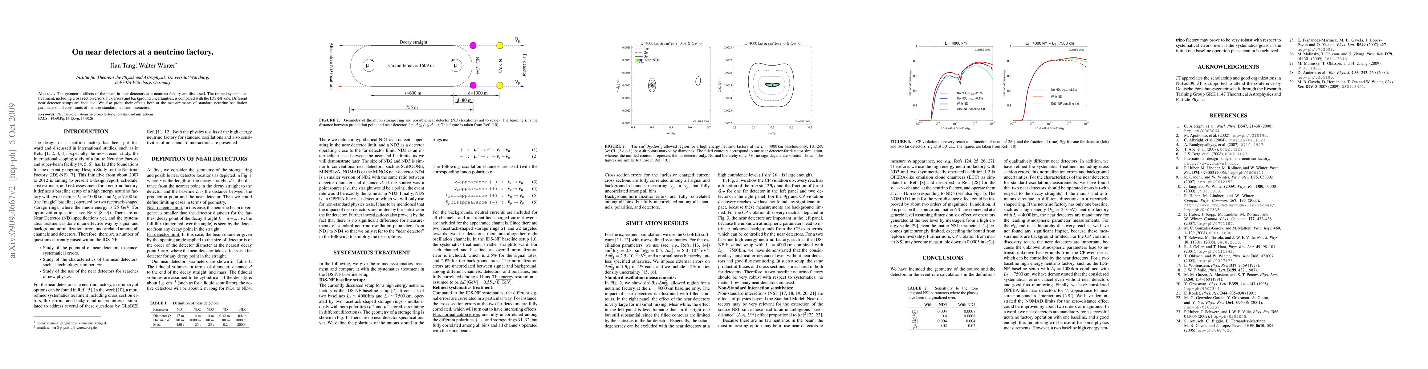 The geometric effects of the beam in near detectors at a neutrino factory are discussed. The refined systematics treatment, including cross section errors, flux errors and background uncertainties, is compared with the IDS-NF one. Different near detector setups are included. We also probe their effects both at the measurements of standard neutrino oscillation parameters and constraints of the non-standard neutrino interaction.