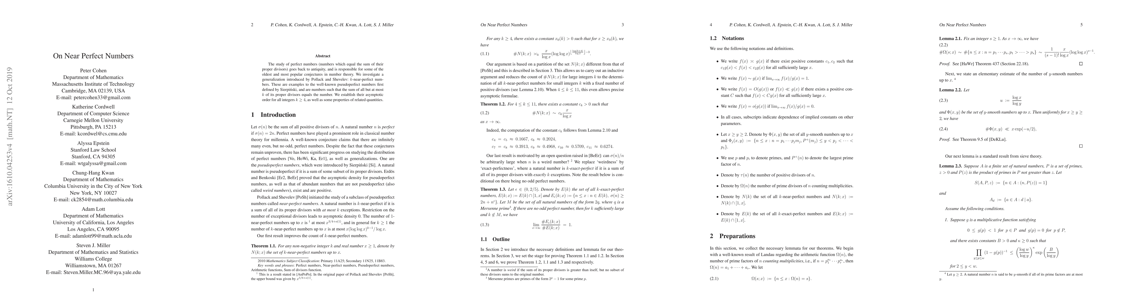 The study investigates k-near-perfect numbers, a generalization of pseudoperfect numbers, establishing their asymptotic order for all integers k ≥ 4 and exploring properties of related quantities.
