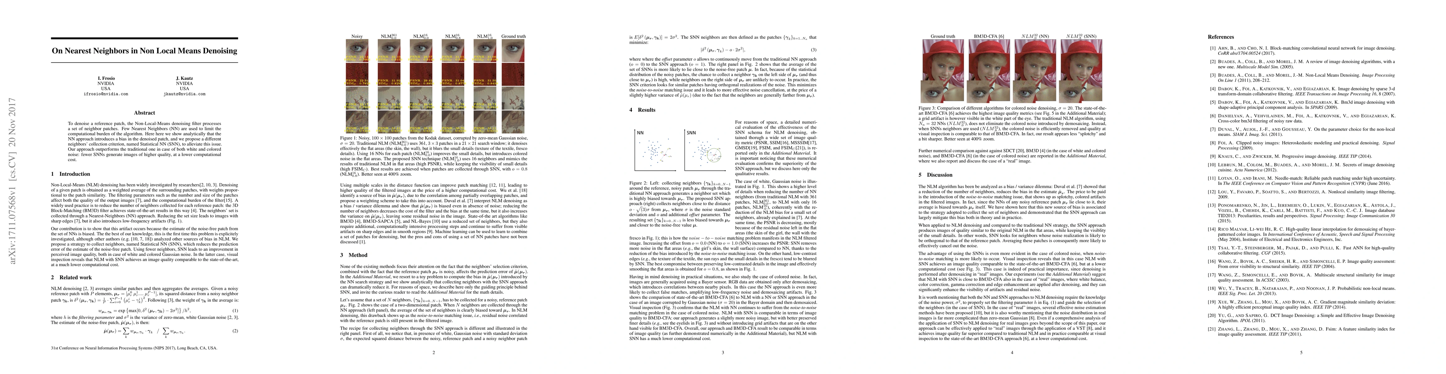 A new approach to denoising images called Statistical NN improves image quality while reducing computational cost compared to traditional methods.