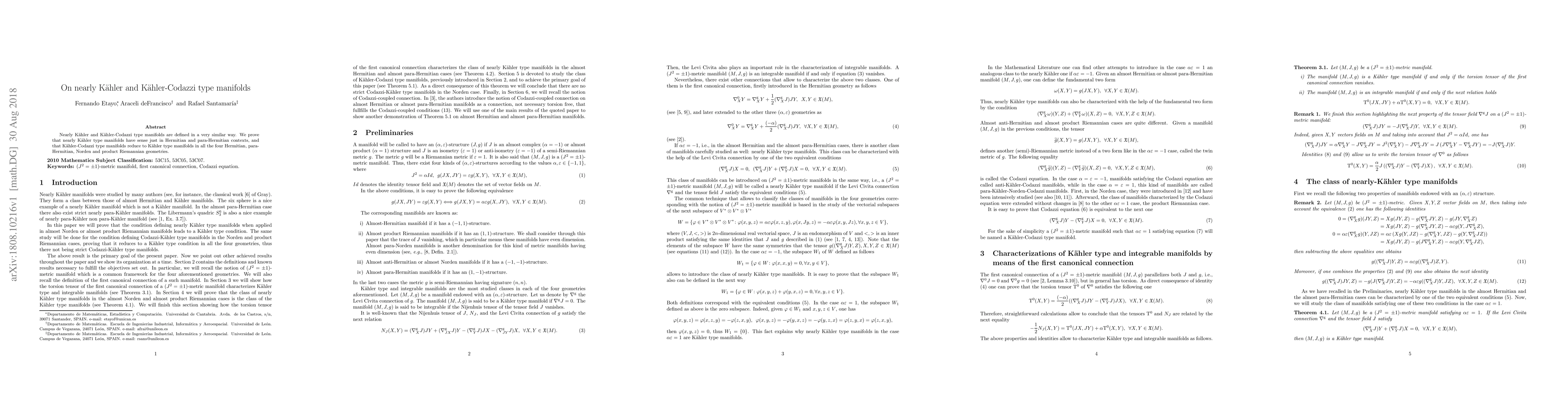 This paper proves that nearly Kähler type manifolds exist only in Hermitian and para-Hermitian contexts, while Kähler-Codazzi type manifolds simplify to Kähler type manifolds across four different Riemannian geometries.