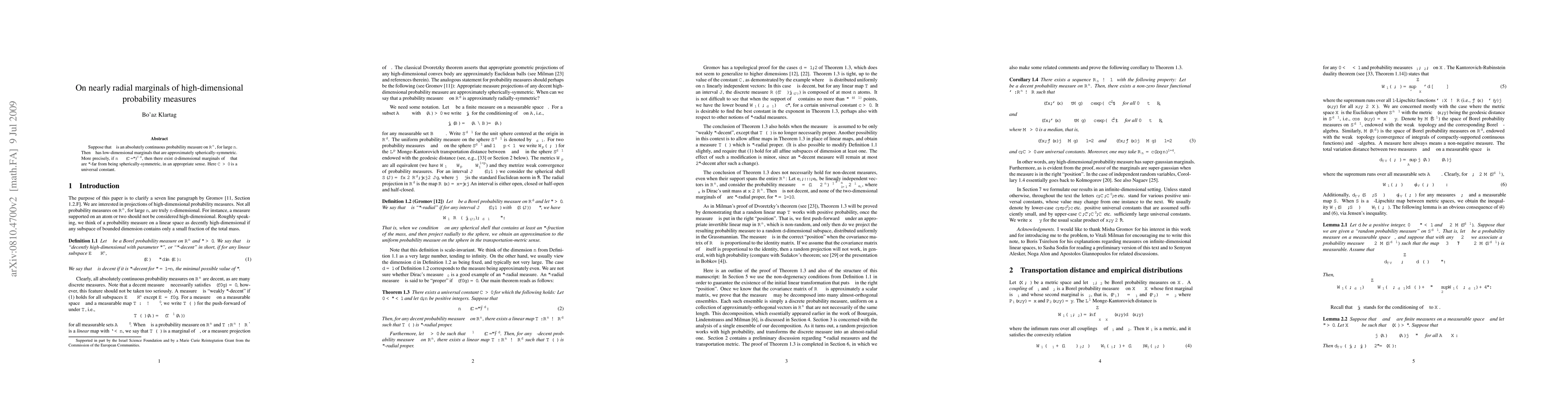 We prove that any absolutely continuous probability measure on a high-dimensional linear space has low-dimensional marginals that are approximately spherically-symmetric.