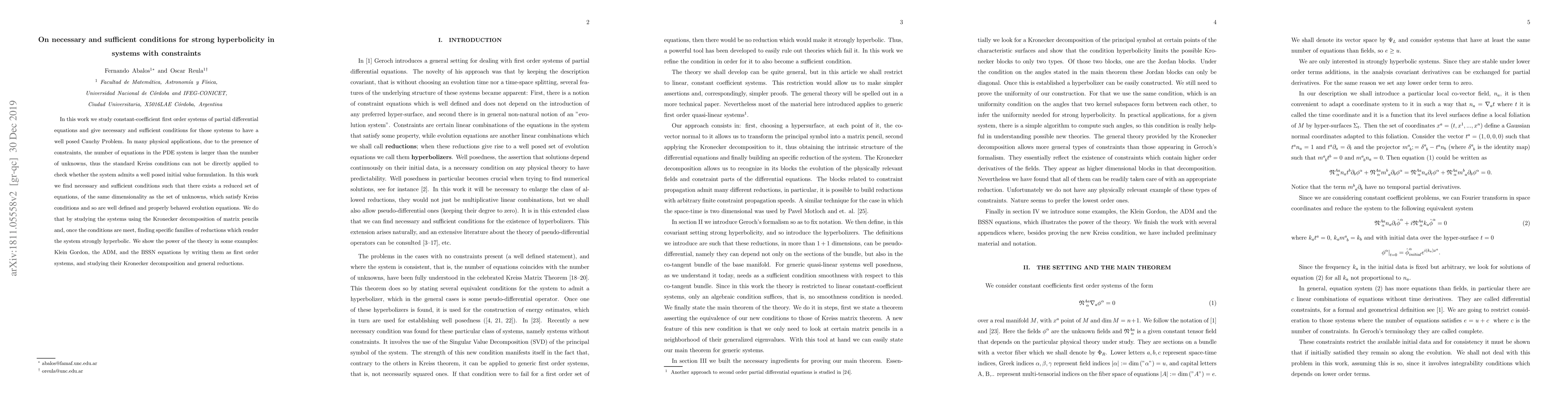 In this work we study constant-coefficient first order systems of partial differential equations and give necessary and sufficient conditions for those systems to have a well posed Cauchy Problem. In many physical applications, due to the presence of constraints, the number of equations in the PDE system is larger than the number of unknowns, thus the standard Kreiss conditions can not be directly applied to check whether the system admits a well posed initial value formulation. In this work we find necessary and sufficient conditions such that there exists a reduced set of equations, of the same dimensionality as the set of unknowns, which satisfy Kreiss conditions and so are well defined and properly behaved evolution equations. We do that by studying the systems using the Kronecker decomposition of matrix pencils and, once the conditions are meet, finding specific families of reductions which render the system strongly hyperbolic. We show the power of the theory in some examples: Klein Gordon, the ADM, and the BSSN equations by writing them as first order systems, and studying their Kronecker decomposition and general reductions.